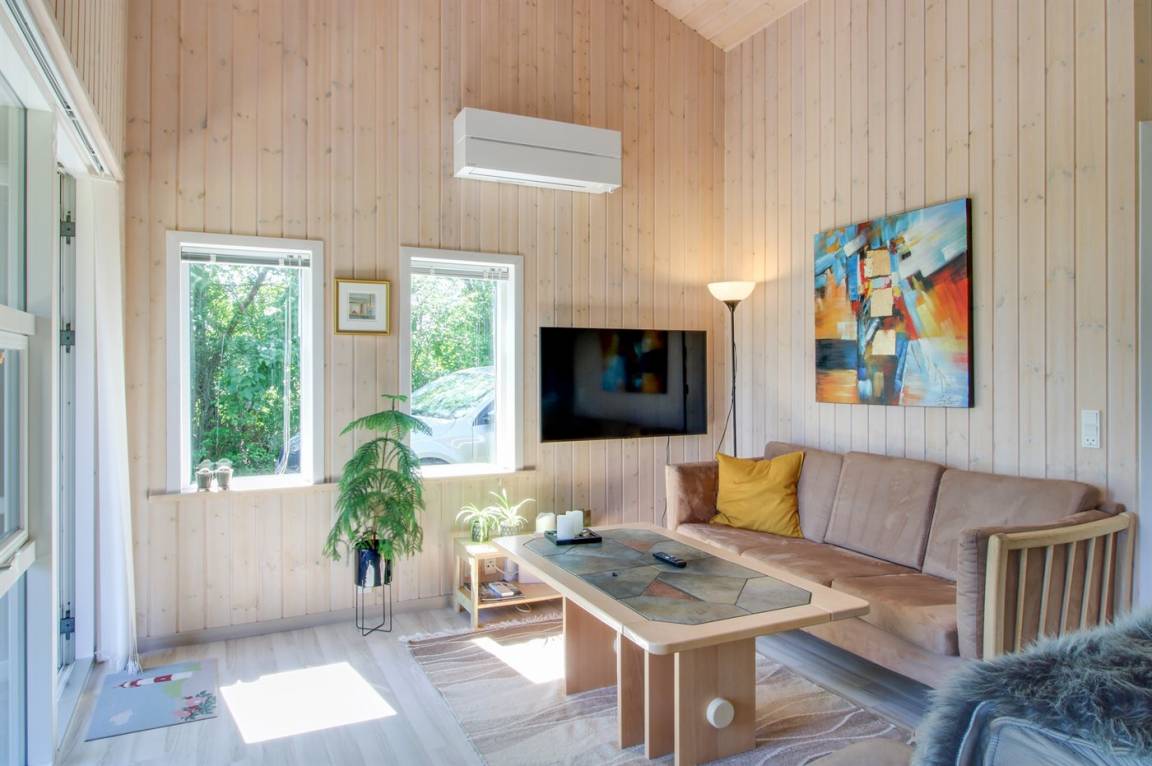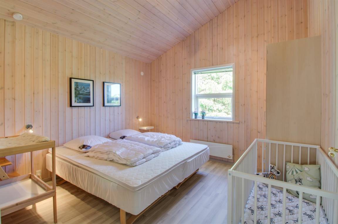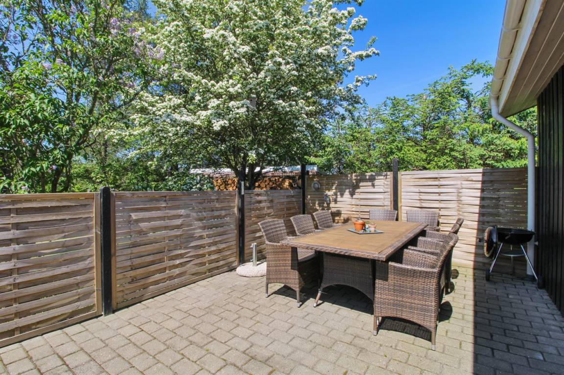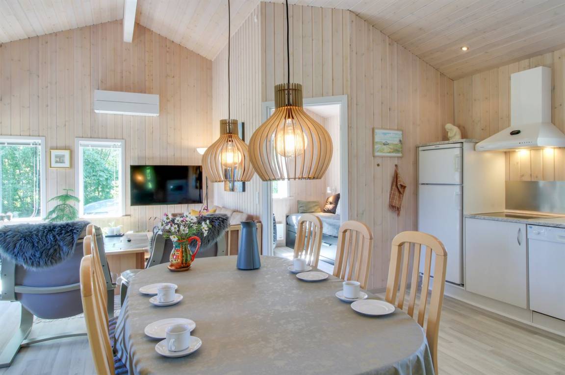 Gemütliches und schönes Ferienhaus in Holz, auf einem Naturgrundstück, ca. 700 m vom Sandbadestrand gelegen. Grosse Terrasse mit Gartenmöbeln, Sonnenliegen und Grill.