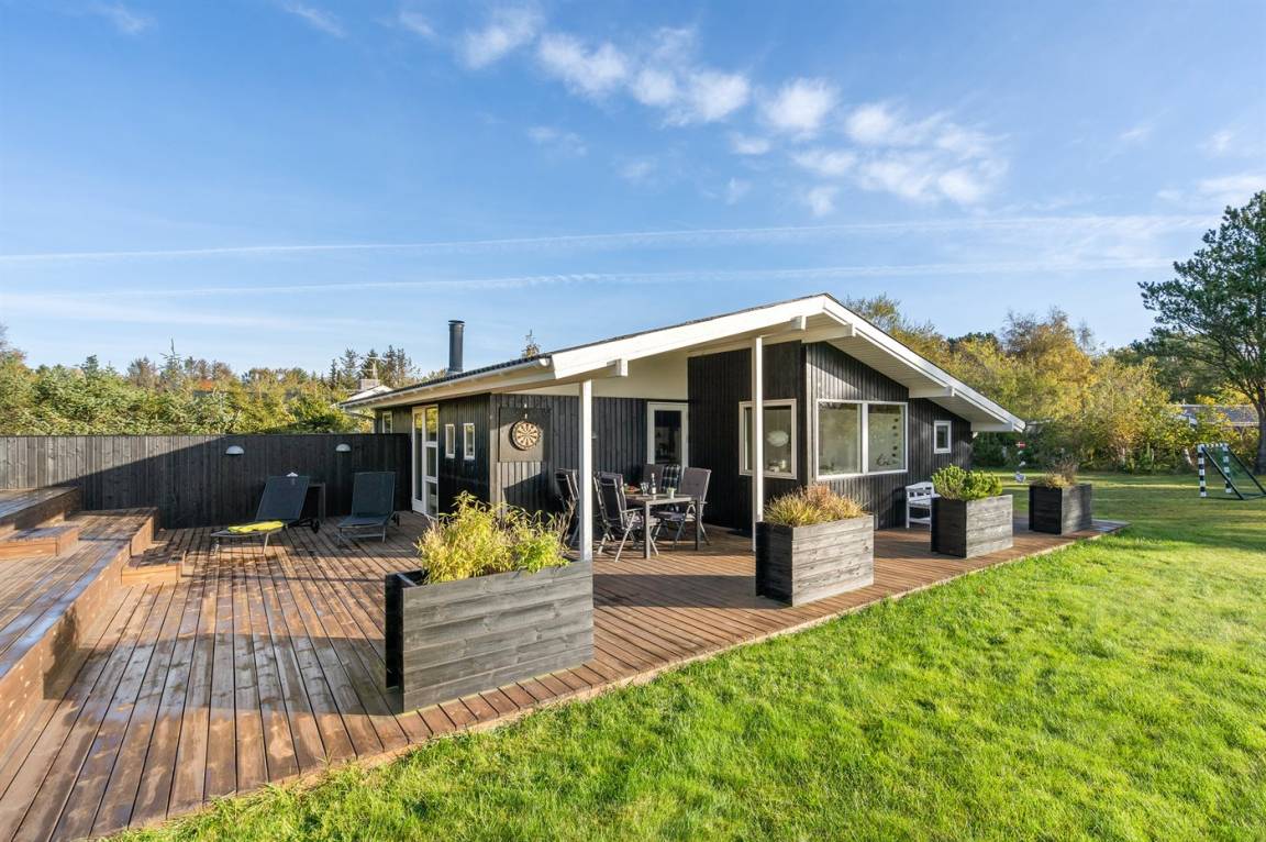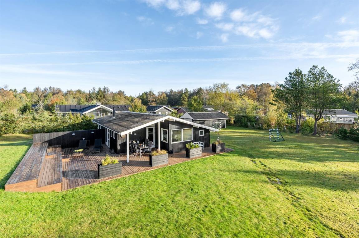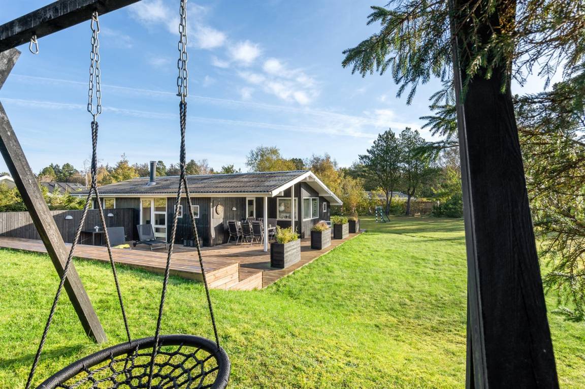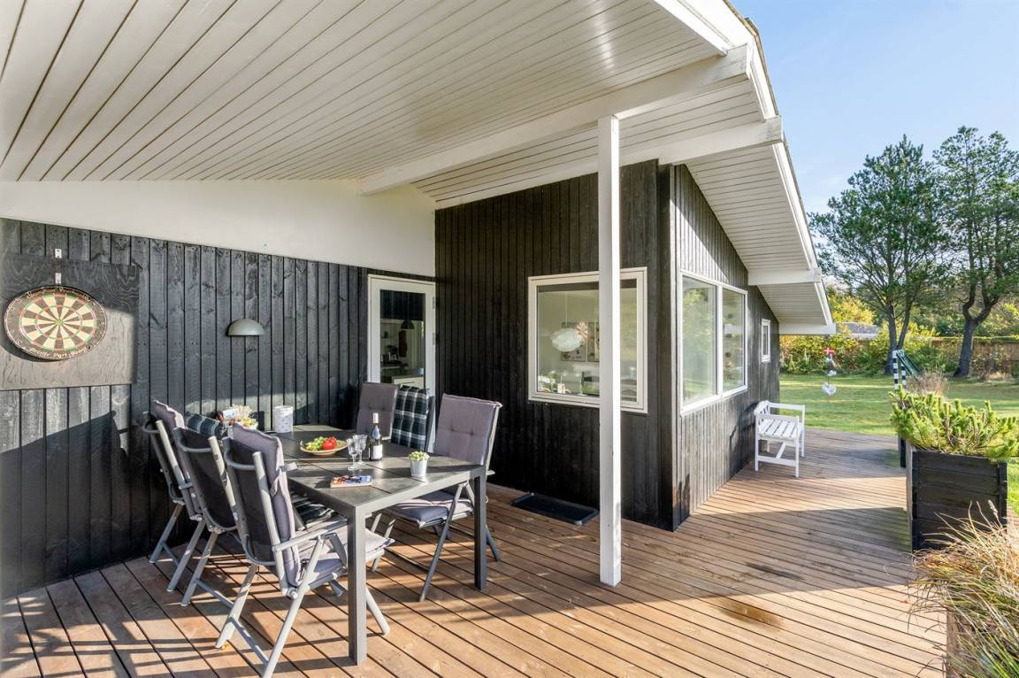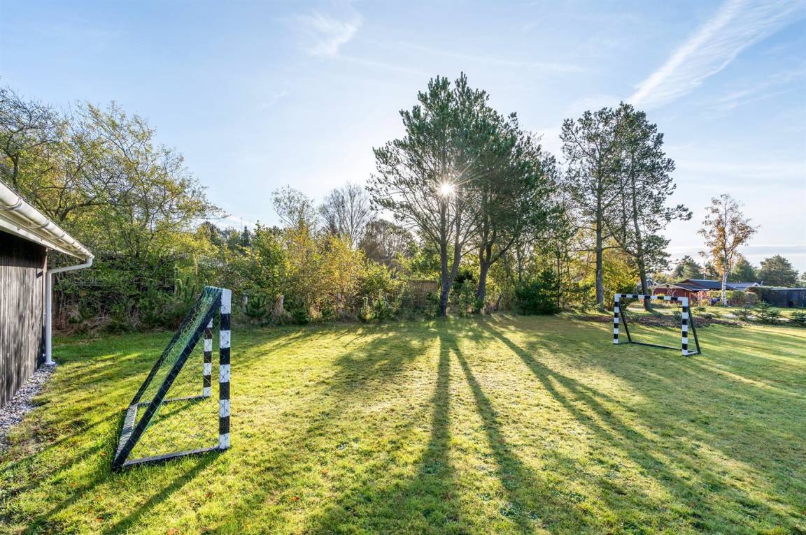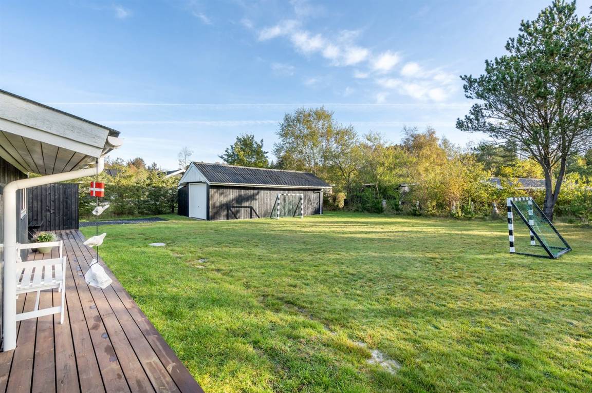 DraußenDie Ferienunterkunft liegt auf einem 1600 m² großen Gartengrundstück. Die Entfernung zum Meer beträgt 600 m. Die nächste Einkaufsmöglichkeit liegt 600 m entfernt. Es steht ein 85 m² Terrassenareal zur Verfügung. Außerdem gibt es 15 m² überdachte Terrasse. Schaukel. Fußballtor.Lagerfeuerstelle. Es steht ein Grill zur Verfügung. Parkplatz auf dem Grundstück.