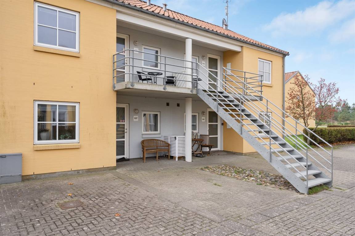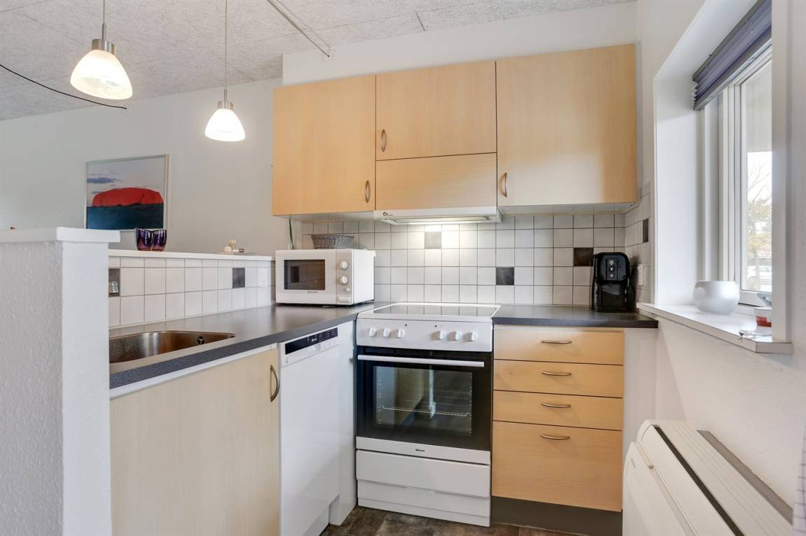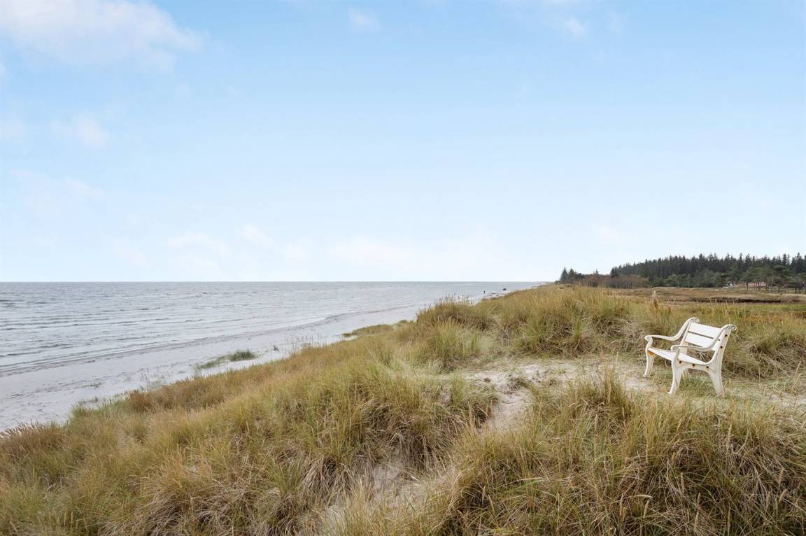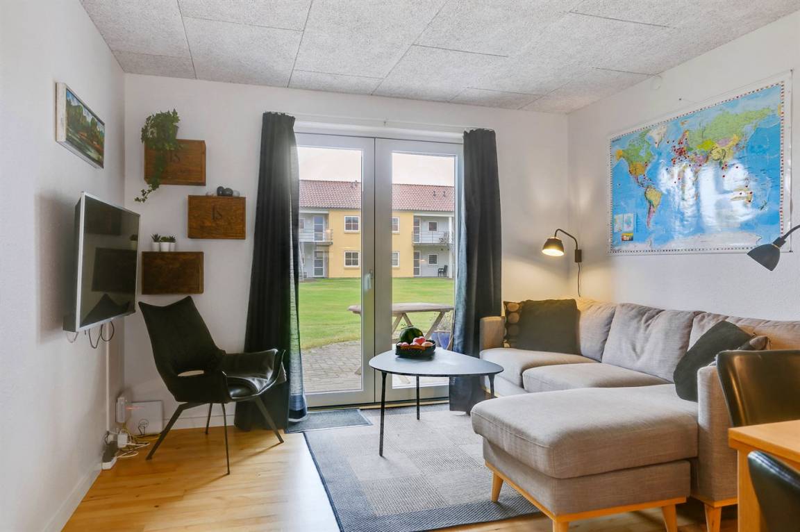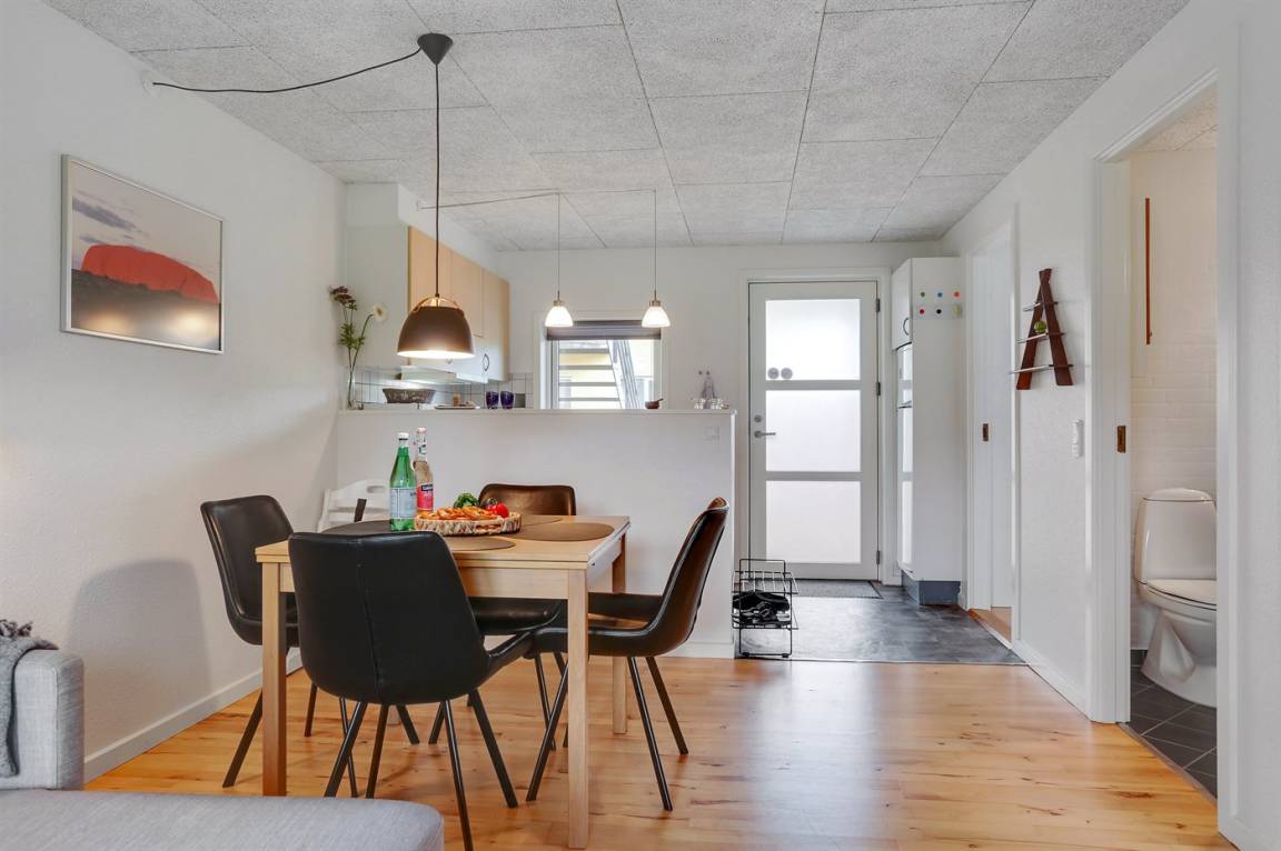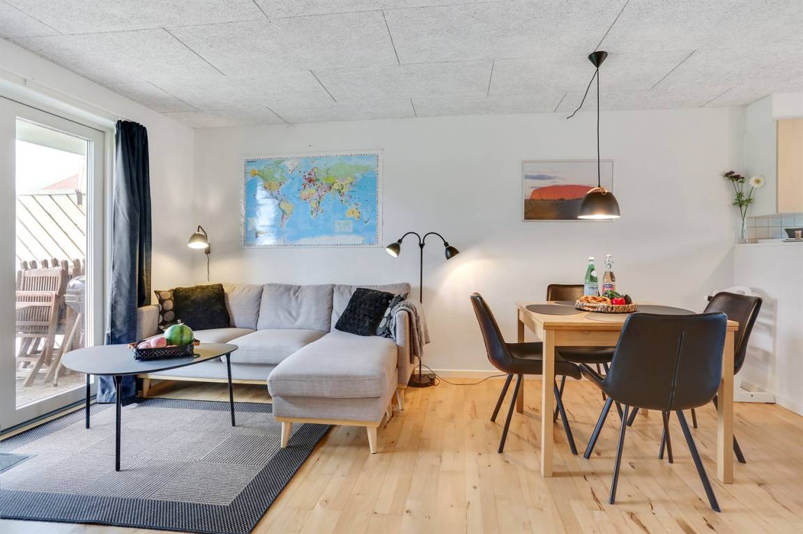 Von der Terrasse besteht direkter Zugang zum Spielplatz und zu den gemeinschaftlichen Grünflächen, wo viel Platz zum Spielen und Toben ist. Die Wohnung bietet einen schönen Blick auf das Kattegat und liegt in landschaftlich reizvoller Umgebung zwischen Hou und Hals.