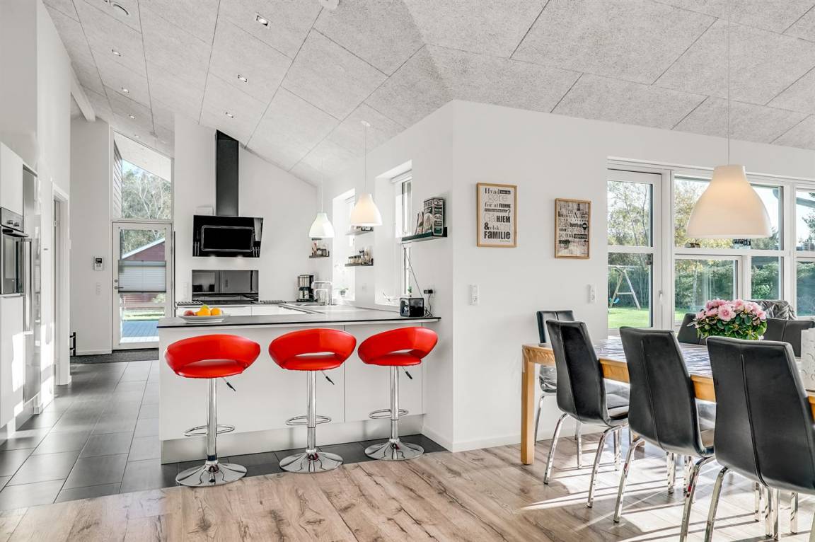 Das Ferienhaus eignet sich für 8 Personen. Die Ferienunterkunft hat eine Wohnfläche von 150 m² und wurde 2017 gebaut. Es ist erlaubt 1 Haustier mitzubringen. Die Ferienunterkunft ist mit energiesparender Wärmepumpe ausgestattet. Fußbodenheizung in allen Räumen. Die Ferienunterkunft ist mit Waschmaschine ausgestattet. Wäschetrockner. Tiefkühlmöglichkeit mit 100 Liter Nutzinhalt. Es gibt außerdem einen Kaminofen. Für die jüngsten Feriengäste ist 1 Kinderhochstuhl vorhanden.