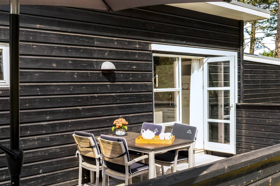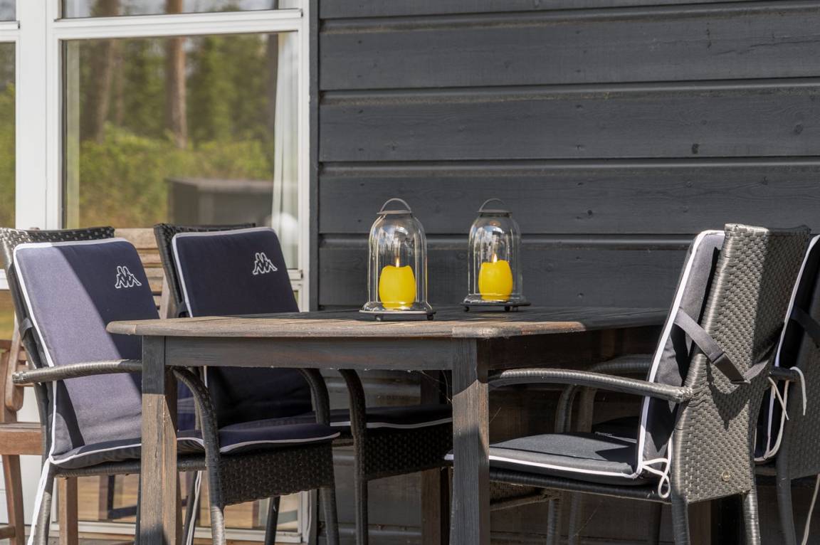 „The vacation at the holiday home: Et fantastik hus med god indretning og fuldt udstyret med inventar. Grunden til utilfredsheden er, det indtryk vi møder udenfor på terrasser indgang med masser af ukrudt på flise arealerne, samt manglende opsamling af nedfald, som fremmer en hær af myrer. Det hele bar præg af, at der ikke var klargjort til sæsonstart så vel inde som ude. Indenfor var det umiddelbart et pænt indtryk, men efter et par dage hvor vi lavede en almindelig rengøring med aftørring af diverse møbler og flader, fik vi et chok da vi kunne se at kluden var helt sort ved første berøring, det var især lædermøbler samt diverse døre, vi mener dette skyldes sod fra brændeovnen - og masser af spindelvæv ved lamper og loft. Alle havemøbler var vi nødsaget til at spule og vaske med sæbe før de var anvendelige, og det var ikke noget der var kommet på en uge. Ved bestillingen af sommerhuset fremstår den som et supert opholdssted at tilbringe ferien, så skuffelsen var stor pga af ovennævnte indtryk ved ankomst. Syntes ejeren af huset har et stort ansvar for at huset ikke var klargjort til sæson, men må også give Sol og Strand et ansvar for, at lejeboligen er klargjort til sæsonstart. Vi kunne selvfølgelig have krævet at huset og udenoms arealerne rengjort i den første uge, men ikke en mulighed for os da der også var andre end os i huset, ved vores henvendelse på kontoret lånte vi kost og skovl så vi kunne få det værste fjernet udenfor. Håber hermed at i også kan rette op på lignende fremover idet kontoret altid er venlige og imødekommende.“