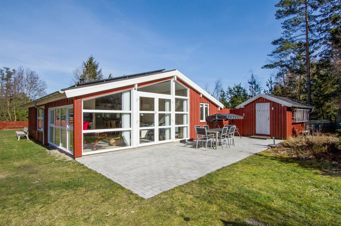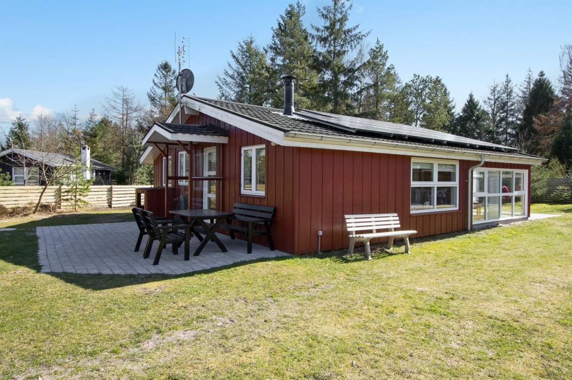 Gemütliches und schönes Ferienhaus in Holz mit Gartenmöbeln, auf einem grossen eingezäuntes Naturgrundstück nah am Sandbadestrand - Bisnap Strand - gelegen.