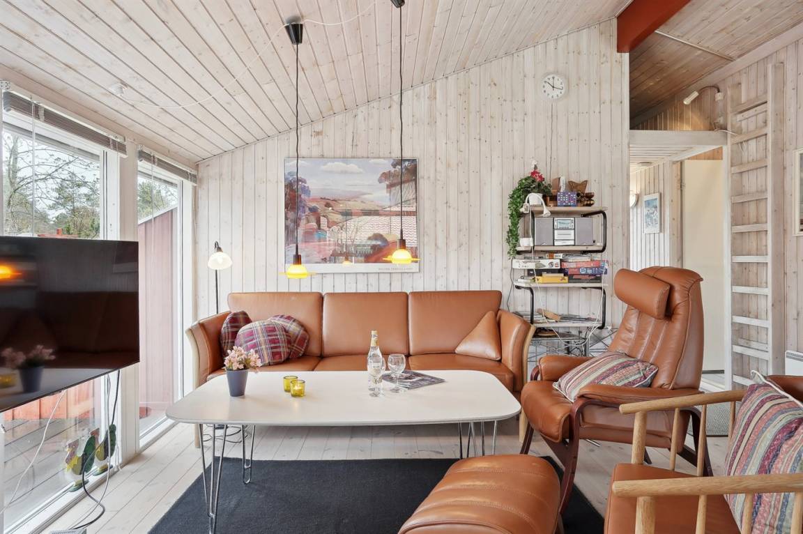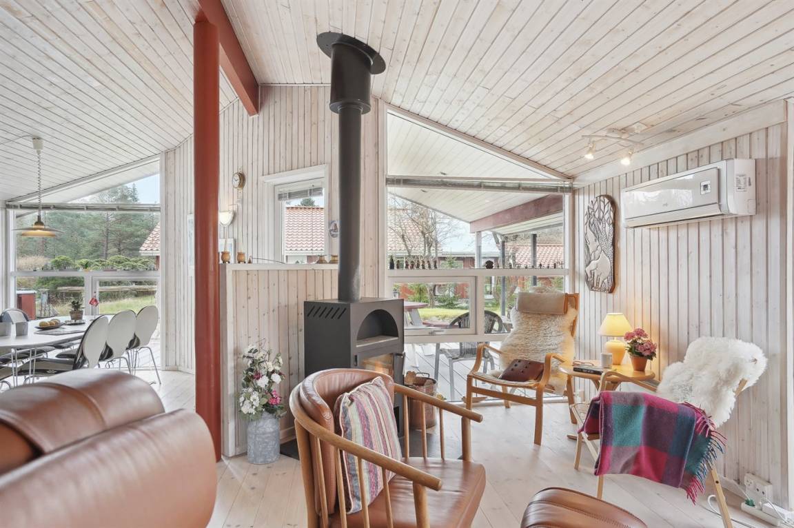 Ein schönes und gemütlich eingerichtetes Ferienhaus aus Holz. Das Haus liegt in sehr ruhiger Umgebung, auf einem Naturgrundstück – nur 200 m vom Wasser entfernt. Übrigens: Die 2 Schlafplätze im Alkoven befinden sich im Wohnzimmer.