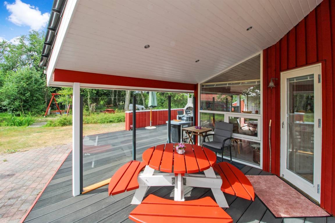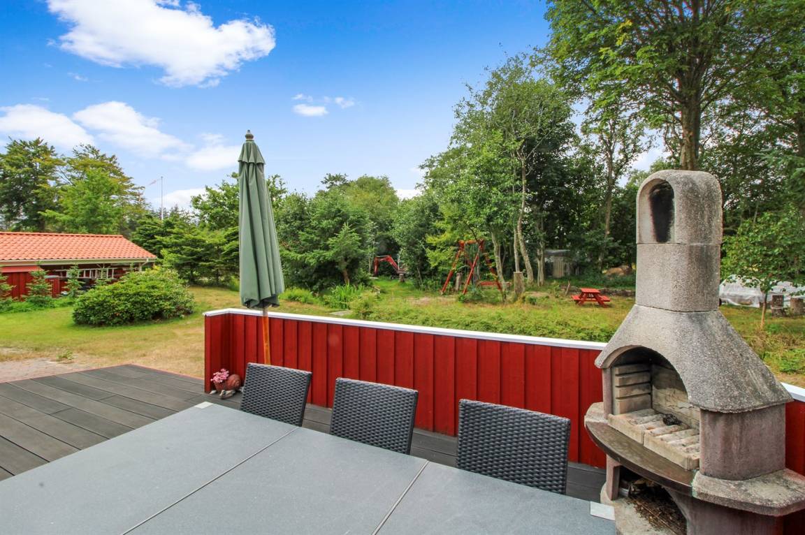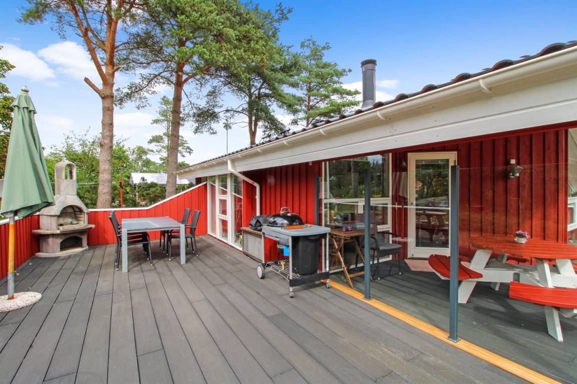 DraußenDie Ferienunterkunft liegt auf einem 1090 m² großen Naturgrundstück. Die Entfernung zum Meer beträgt 200 m. Die nächste Einkaufsmöglichkeit liegt 800 m entfernt. Es steht ein 50 m² Terrassenareal zur Verfügung. Außerdem gibt es 6 m² überdachte Terrasse. Schaukel. Sandkasten.An Sommerabenden sorgt der Außenkamin für eine gemütliche Atmosphäre.