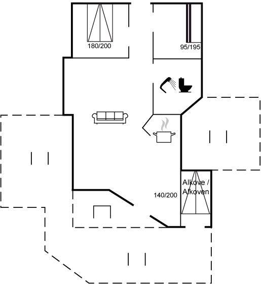 SchlafverhältnisseDie Schlafplätze verteilen sich auf 2 Schlafräume. 2 Schlafplätze in einem Doppelbett. 2 Schlafplätze in einem Etagenbett.2 Schlafplätze im Alkoven. Ferner steht ein Kinderbett zur Verfügung.