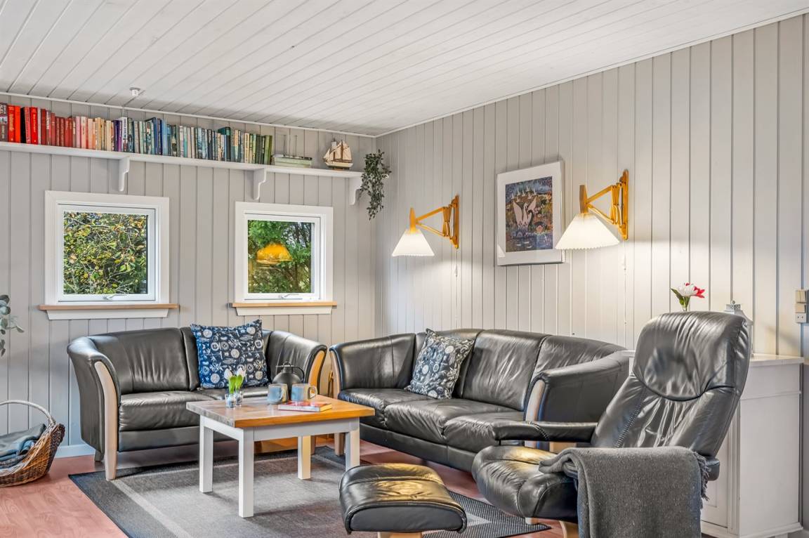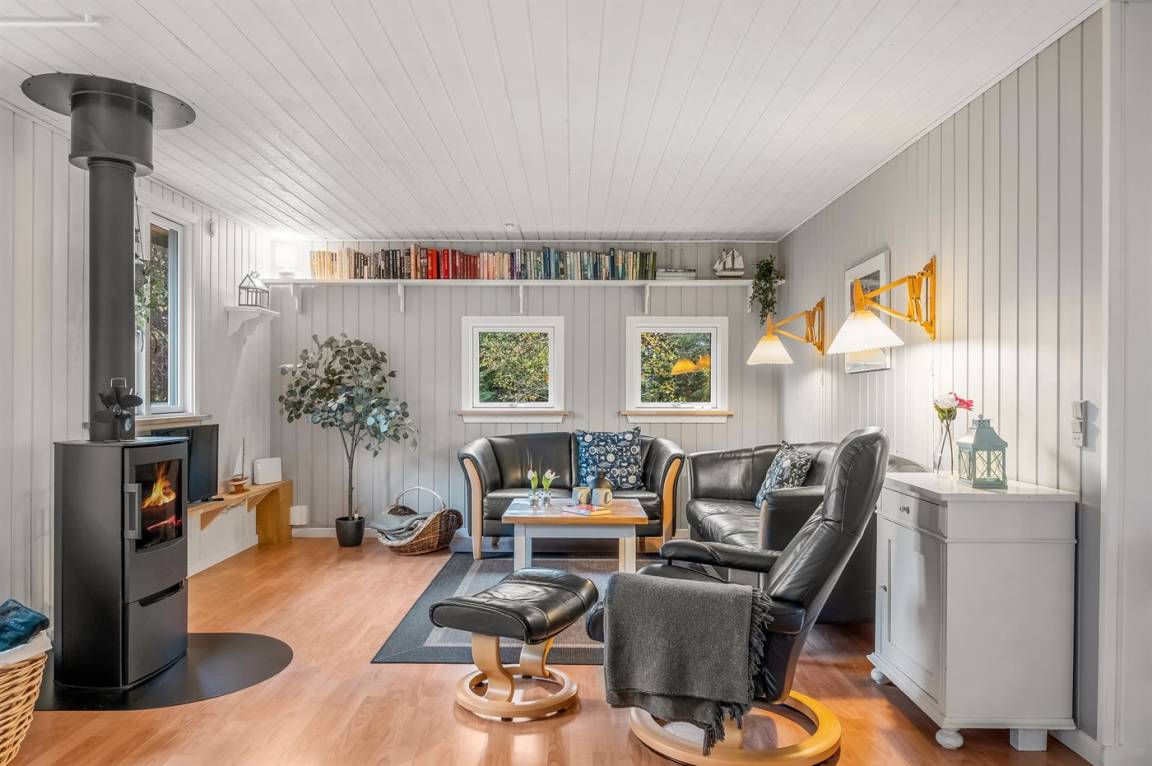 DraußenDie Ferienunterkunft liegt auf einem 1265 m² großen Gartengrundstück. Die Entfernung zum Meer beträgt 930 m. Die Entfernung zum Fjord beträgt 6400 m. Die nächste Einkaufsmöglichkeit liegt 1460 m entfernt. In einem Abstand von 5900 m gibt es einen Golfplatz. Es steht ein offenes Terrassenareal zur Verfügung. Schaukel. Rutsche. Es steht ein Grill zur Verfügung. Parkplatz auf dem Grundstück.