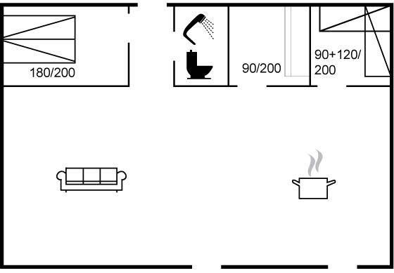 SchlafverhältnisseDie Schlafplätze verteilen sich auf 3 Schlafräume. 2 Schlafplätze in einem Doppelbett. 4 Schlafplätze in Etagenbetten.