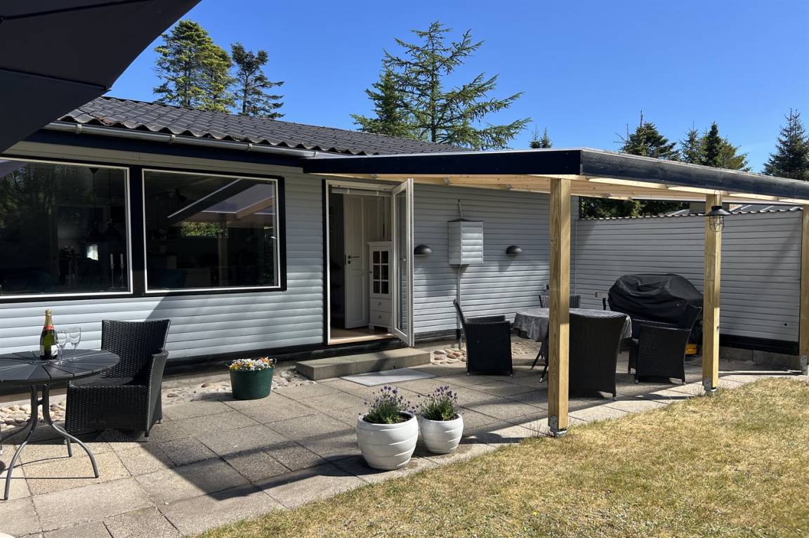DraußenDie Ferienunterkunft liegt auf einem 1224 m² großen Gartengrundstück. Die Entfernung zum Meer beträgt 800 m. Die Entfernung zum Fjord beträgt 5200 m. Die nächste Einkaufsmöglichkeit liegt 2700 m entfernt. In einem Abstand von 4600 m gibt es einen Golfplatz. Außerdem gibt es 9 m² überdachte Terrasse. Es steht ein offenes Terrassenareal zur Verfügung. Geräteraum. Parkplatz auf dem Grundstück.