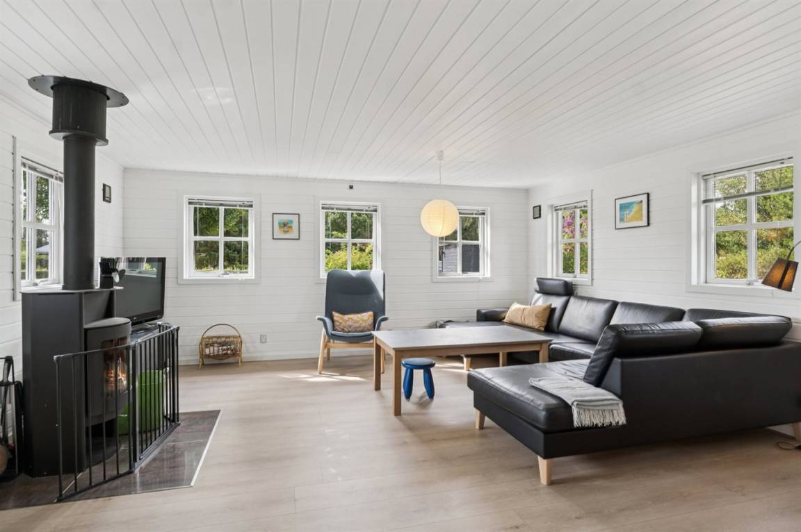 Im Inneren ist das Ferienhaus in sehr gutem Zustand und wurde 2020 umfassend renoviert. Das Herzstück des Hauses ist die große und helle Küche/Esszimmer und das Wohnzimmer in einem, mit viel Tageslicht und direktem Zugang zur schönen Terrasse. Das Ferienhaus ist sehr gut eingerichtet, und es gibt ausreichend Platz für zum Beispiel zwei Familien, die gemeinsam Urlaub machen möchten, oder eine Familie mit Großeltern, die mit in den Urlaub fahren möchten - die Möglichkeiten sind vielfältig in diesem schönen Ferienhaus.