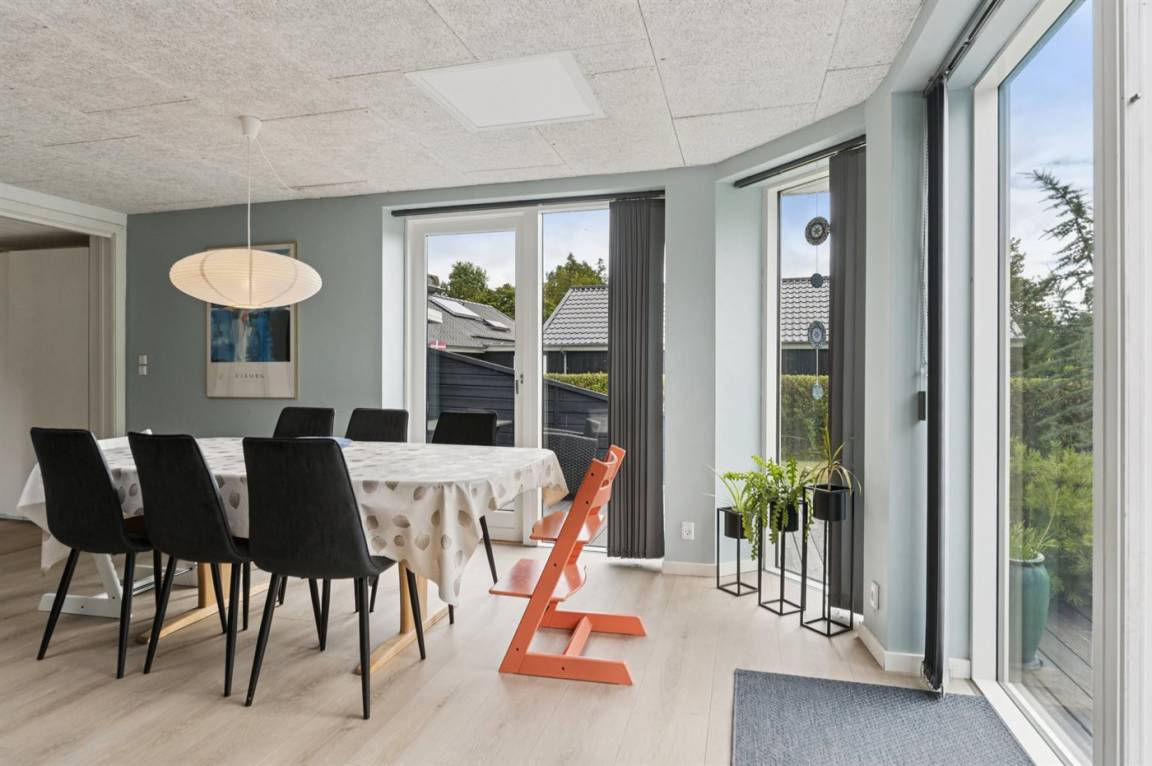 Entlang der schönen Küste des Kattegat, zwischen den Ferienorten Hou und Hals, liegt dieses herrliche und gut gepflegte Ferienhaus in einer ruhigen und naturschönen Umgebung. Das Ferienhaus befindet sich auf einem guten Grundstück mit viel Platz zum Toben, und für eine Familie mit Hund ist dieses Ferienhaus ideal, da das Grundstück eingezäunt ist. Hier gibt es eine schöne Terrassenfläche, von der aus man die Sonne genießen und gleichzeitig einen guten Überblick über den Garten haben kann, während die Kinder Spaß haben.