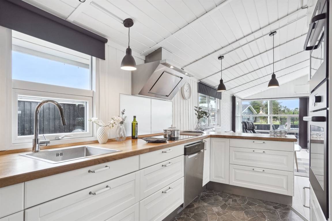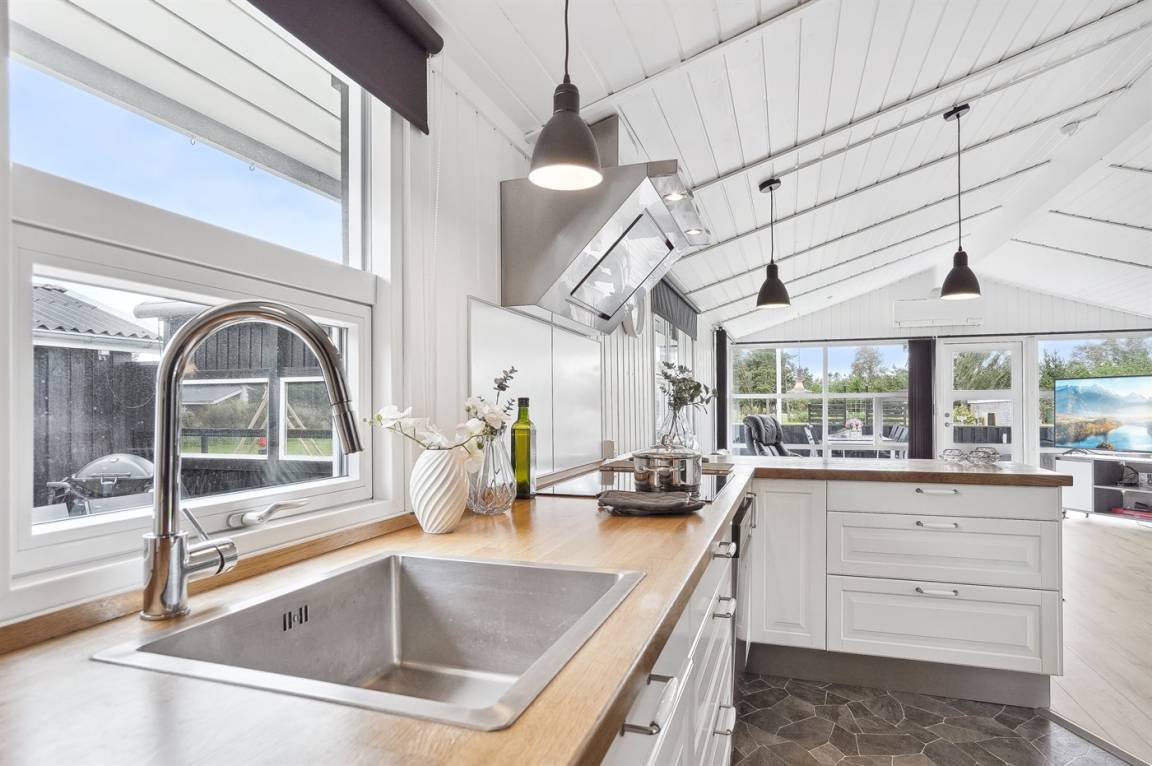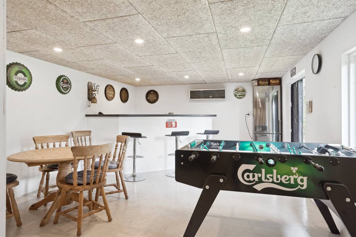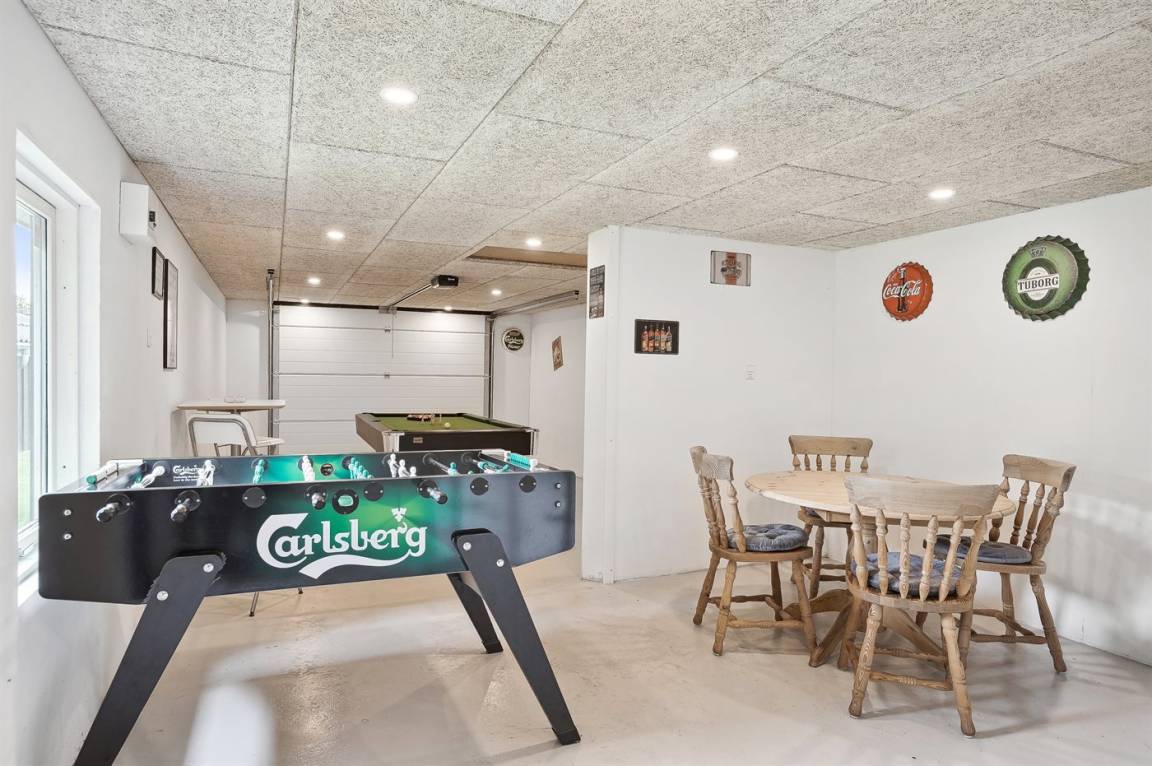 Im Inneren ist das Haus hell und modern eingerichtet und bietet gute Voraussetzungen für einen schönen Urlaub. In der Garage des Hauses befindet sich ein großer und gemütlicher Aktivitätenraum, in dem sowohl Kinder als auch Erwachsene viele Stunden damit verbringen können, sich gegenseitig beim Billard, Pool, Tischfußball und Darts herauszufordern. Hier gibt es auch eine kleine Bar mit dazugehörigem Kühlschrank. Wenn das Wetter also einen Strandbesuch nicht zulässt, gibt es viele Möglichkeiten fürs gemütliche Beisammensein im Aktivitätsraum.