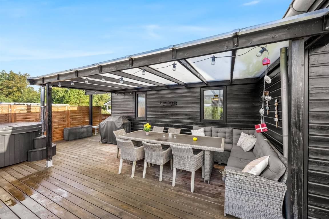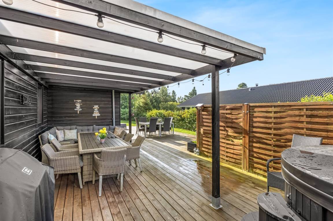 Zum Haus gehören eine große, sonnige Terrasse sowie eine überdachte Terrasse, sodass du das Leben im Freien bei jedem Wetter genießen kannst.