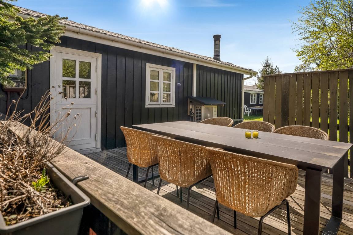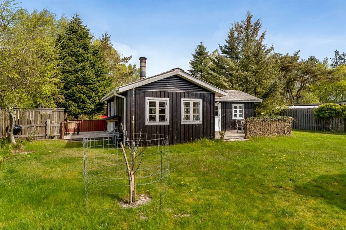 Gemütliches Ferienhaus in Holz, auf einem Naturgrundstück nur 50 m vom Bisnap Strand gelegen. Terrasse mit Gartenmöbeln und Grill.