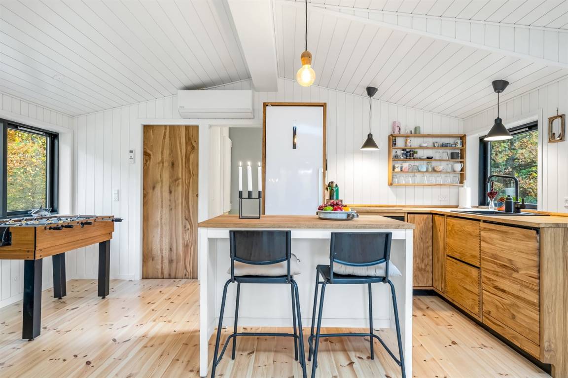 Das Haus verfügt über mehrere gemütlichen Einrichtungen, die deinen Aufenthalt besonders machen – darunter eine Außendusche mit kaltem und warmem Wasser sowie eine Außenküche, damit du das Leben im Freien in vollen Zügen genießen kannst. Für gemütliche Abende stehen dir eine Windschutzhütte und ein Feuerkorb zur Verfügung, wo du Stockbrot rösten, Marshmallows grillen und den Sternenhimmel beobachten kannst.