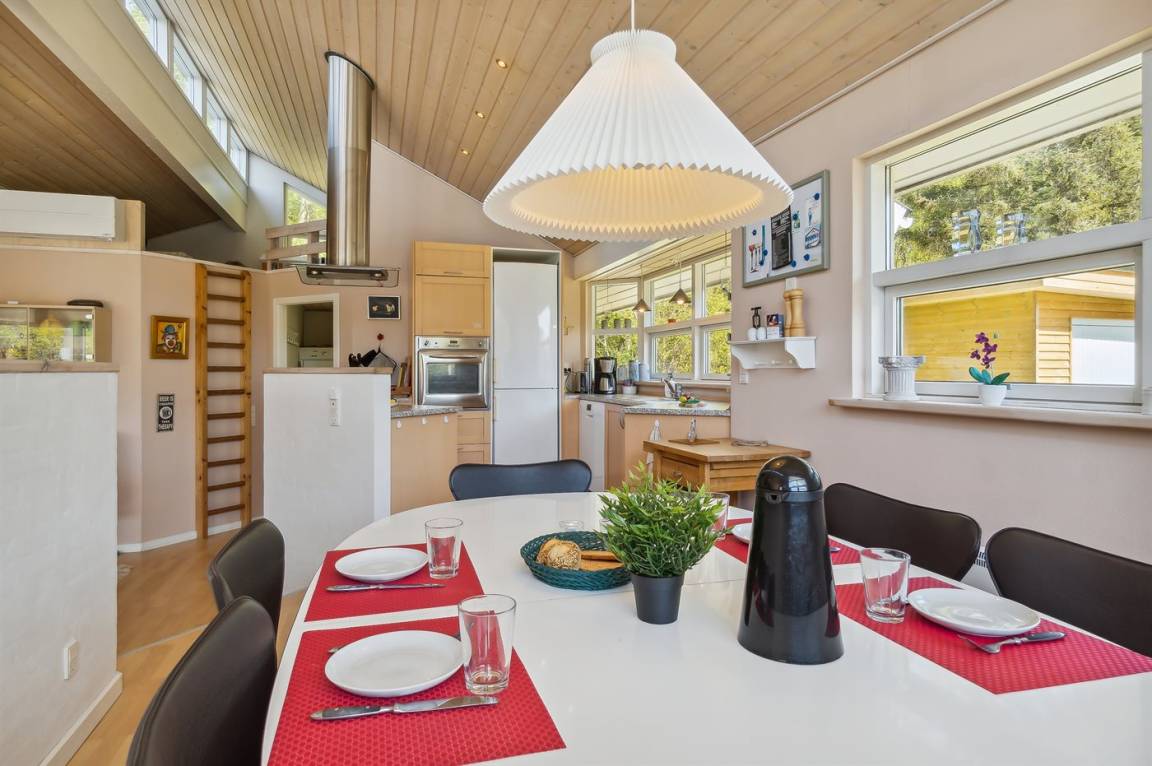 EinrichtungDas Ferienhaus eignet sich für 6 Personen. 10 der Schlafplätze eignen sich jedoch nur für größere Kinder (4-11 Jahre). Die Ferienunterkunft hat eine Wohnfläche von 106 m² und wurde 2001 gebaut. 2003 wurde die Ferienunterkunft teilweise renoviert. Es ist erlaubt 2 Haustiere mitzubringen. Die Ferienunterkunft ist mit Waschmaschine ausgestattet. Wäschetrockner. Tiefkühlmöglichkeit mit 10 Liter Nutzinhalt. Es gibt außerdem einen Kaminofen. Für die jüngsten Feriengäste ist 1 Kinderhochstuhl vorhanden.