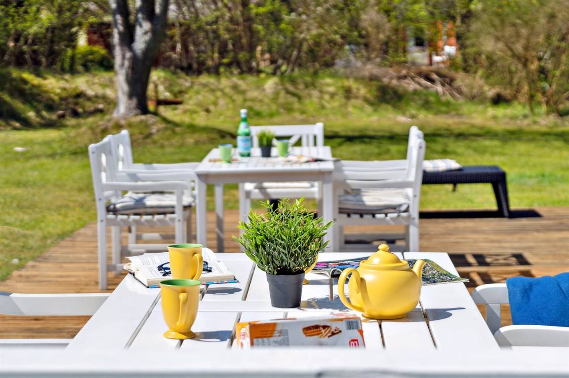 DraußenDie Ferienunterkunft liegt auf einem 1500 m² großen Naturgrundstück. Die Entfernung zum Meer beträgt 500 m. Die nächste Einkaufsmöglichkeit liegt 2500 m entfernt. Es steht ein 130 m² Terrassenareal zur Verfügung. Schaukel. Es steht ein Grill zur Verfügung. Parkplatz auf dem Grundstück.