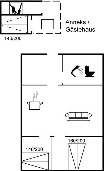 Im Anbau gibt es ein Schlafsofa, das leicht zu einem Doppelbett umfunktioniert werden kann, inklusive einer Toppermatratze.