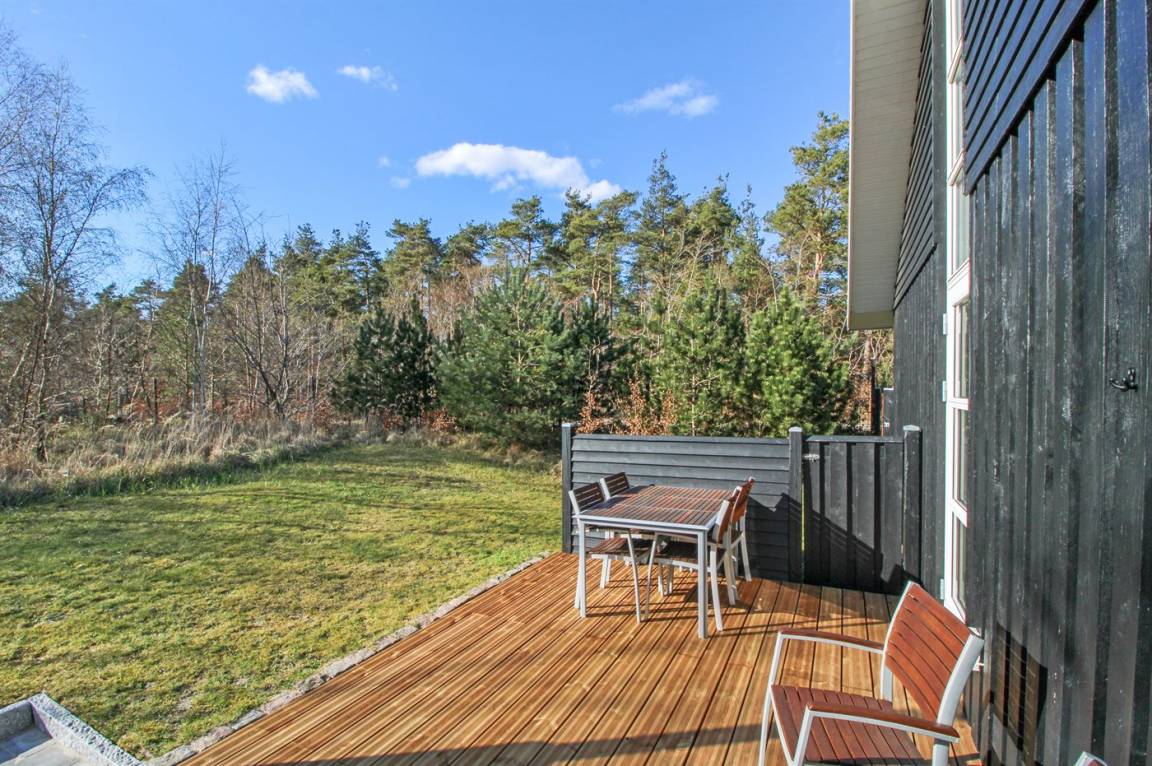 DraußenDie Ferienunterkunft liegt auf einem 1100 m² großen Naturgrundstück. Die Entfernung zum Meer beträgt 300 m. Die nächste Einkaufsmöglichkeit liegt 4000 m entfernt. In einem Abstand von 3800 m gibt es einen Golfplatz. Es steht ein 20 m² Terrassenareal zur Verfügung. Außerdem gibt es 18 m² überdachte Terrasse. Es steht ein Grill zur Verfügung. Es steht ein Carport zur Verfügung. Parkplatz auf dem Grundstück.