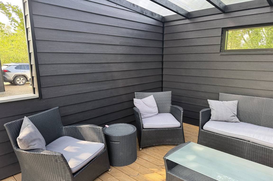 DraußenDie Ferienunterkunft liegt auf einem 1616 m² großen Naturgrundstück. Die Entfernung zum Meer beträgt 300 m. Die nächste Einkaufsmöglichkeit liegt 800 m entfernt. Es steht ein offenes Terrassenareal zur Verfügung. Außerdem gibt es überdachte Terrasse. Es steht ein Grill zur Verfügung. Es ist ein Ladestecker für Elektroautos installiert. Ladestecker Typ 2. Mit einer Ladeleistung von 11 kW. Parkplatz auf dem Grundstück.