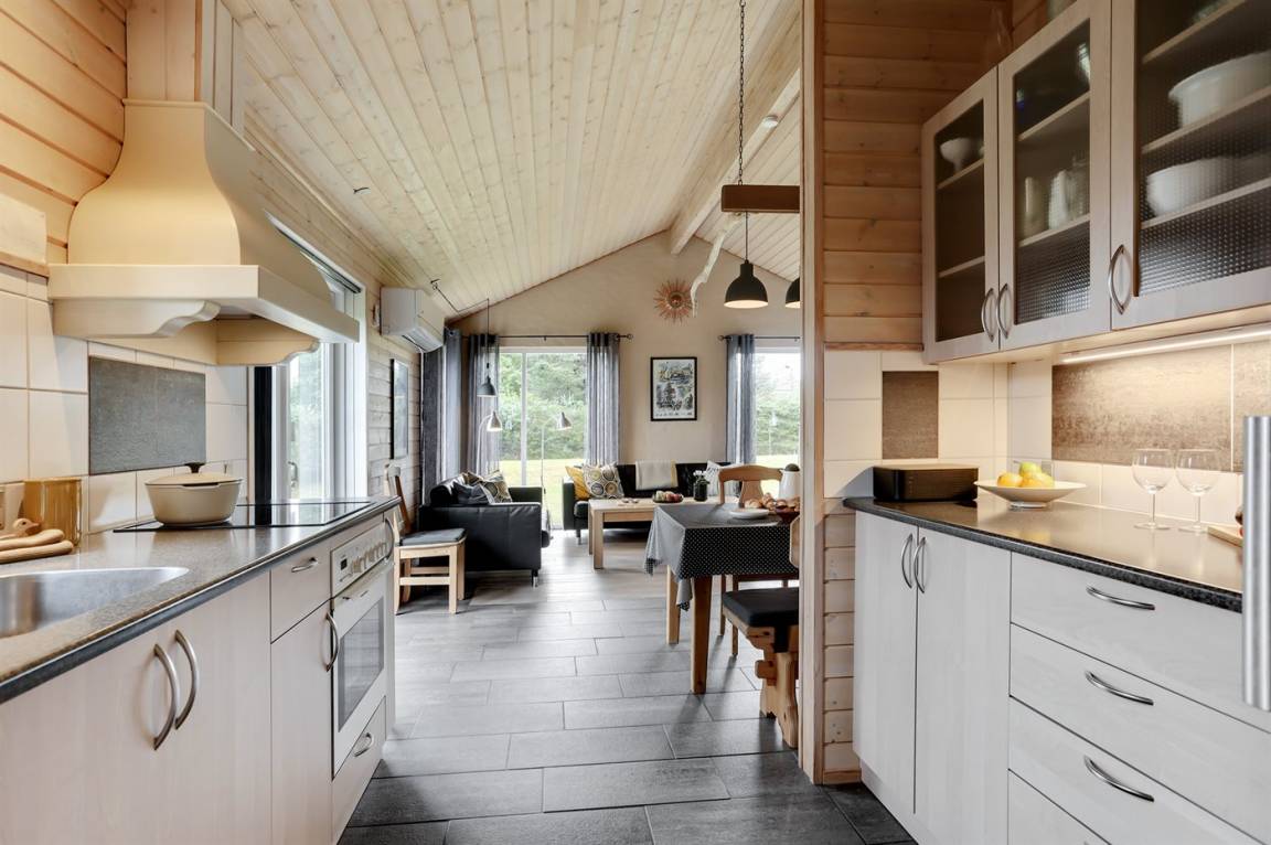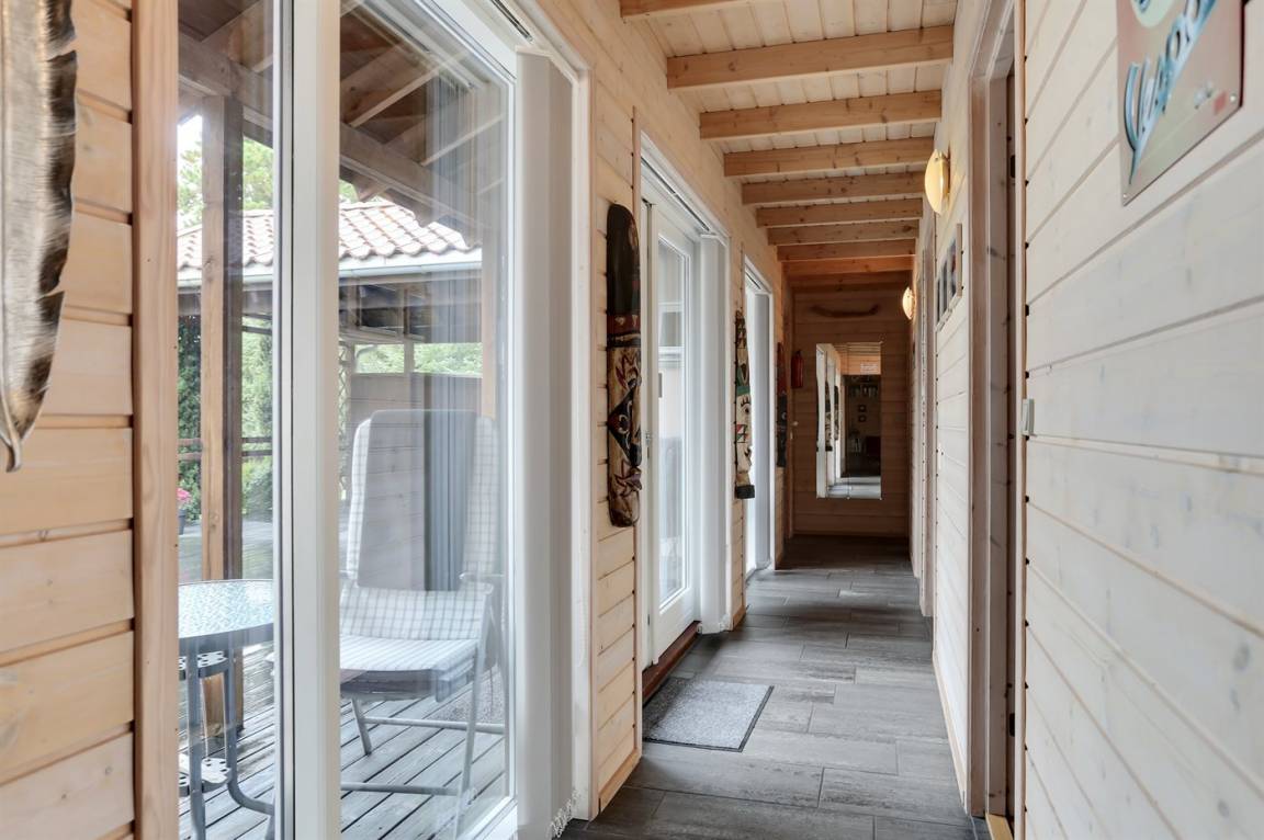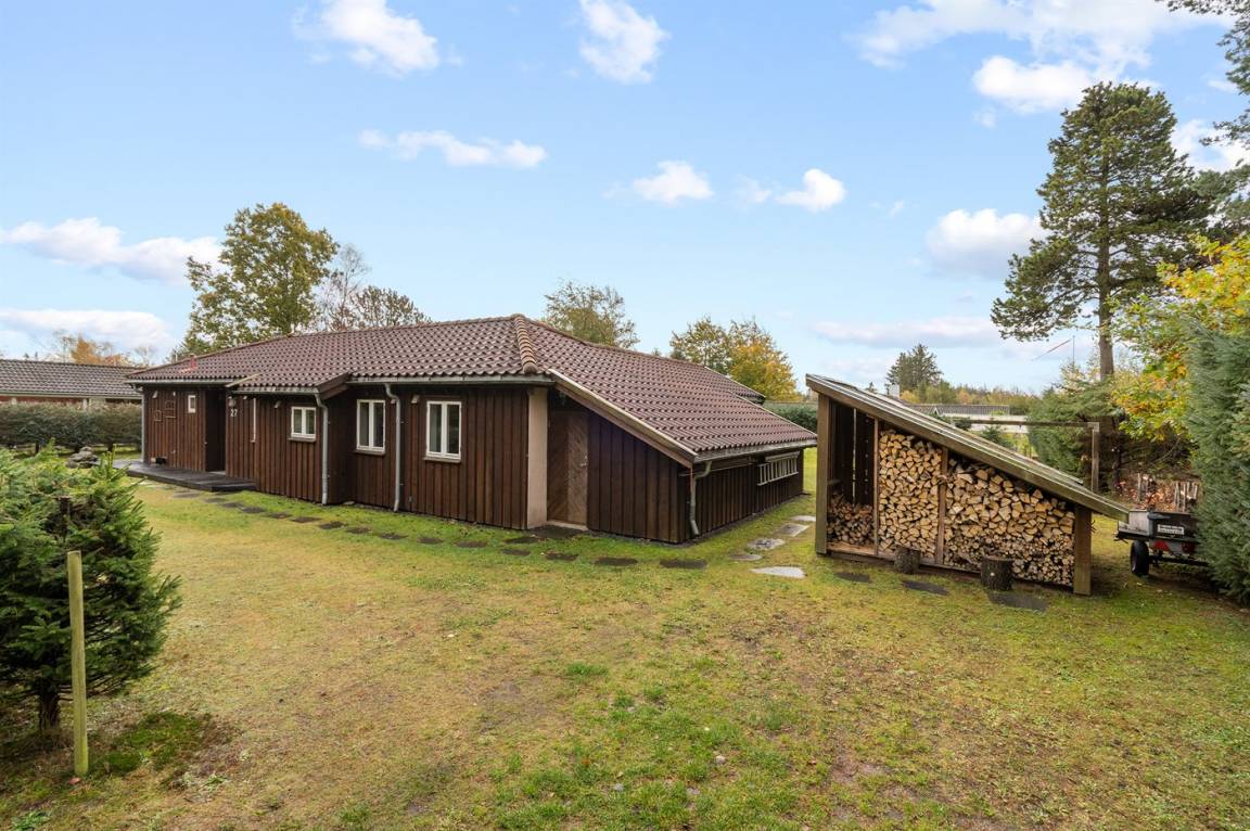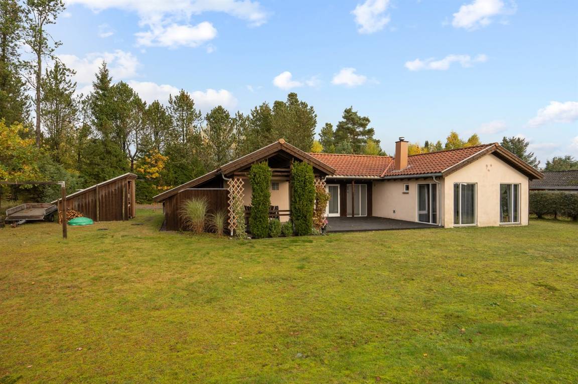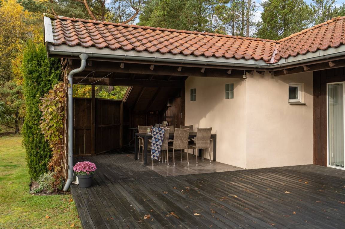 Sehr schönes Ferienhaus in Holz und das Grundstück ist mit Rasen. Grosse, teilweise überdachte Terrasse mit Gartenmöbeln. Das Ferienhaus liegt ca. 1200 m von Sandbadestrand entfernt.