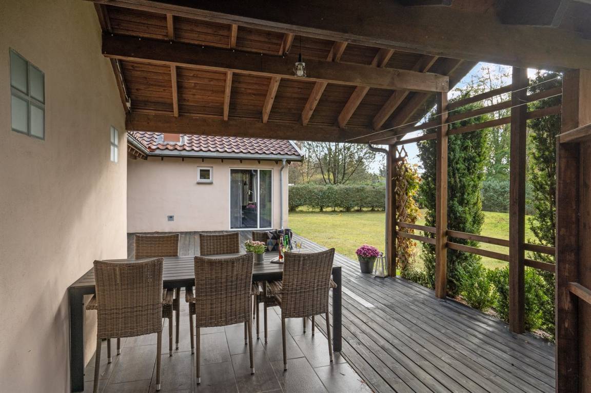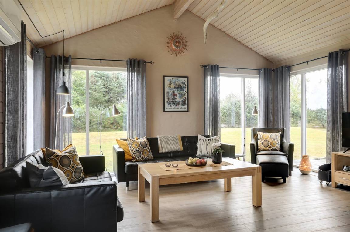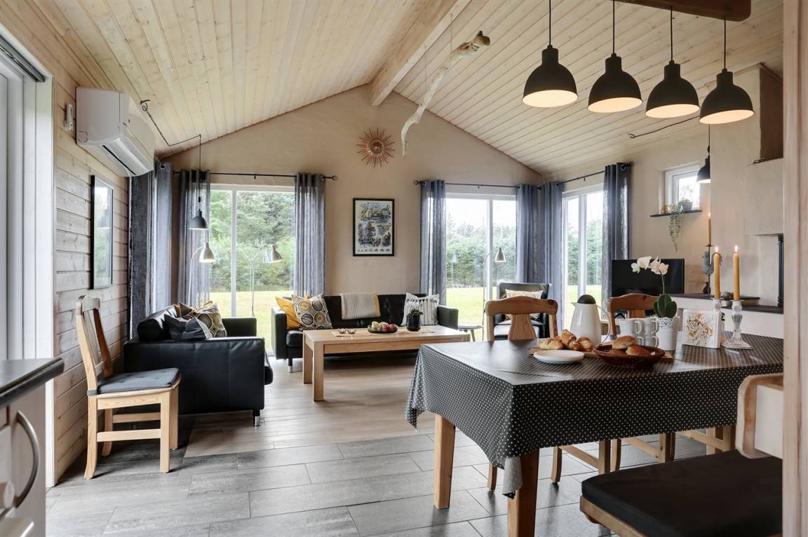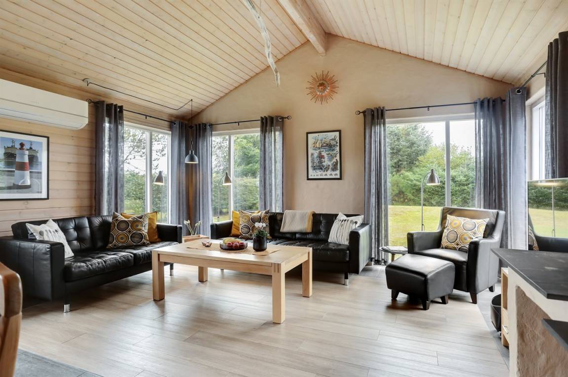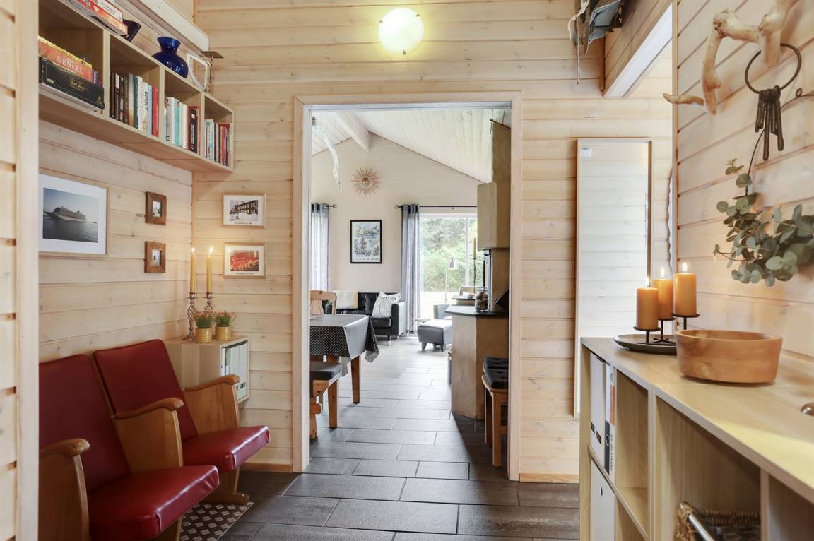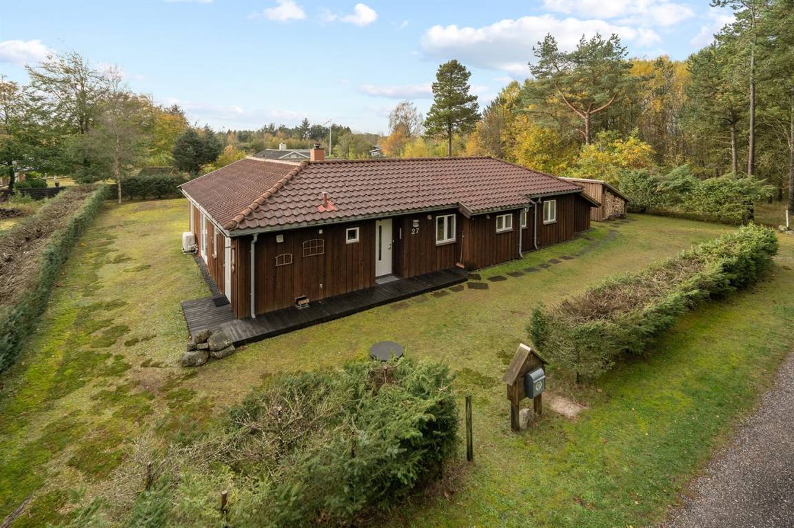 Sehr schönes Ferienhaus in Holz und das Grundstück ist mit Rasen. Grosse, teilweise überdachte Terrasse mit Gartenmöbeln. Das Ferienhaus liegt ca. 1200 m von Sandbadestrand entfernt.