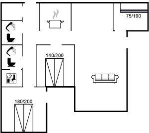SchlafverhältnisseDie Schlafplätze verteilen sich auf 3 Schlafräume. 4 Schlafplätze in Doppelbetten. 2 Schlafplätze in einem Etagenbett. Ferner steht ein Kinderbett zur Verfügung.