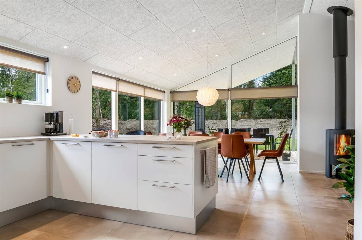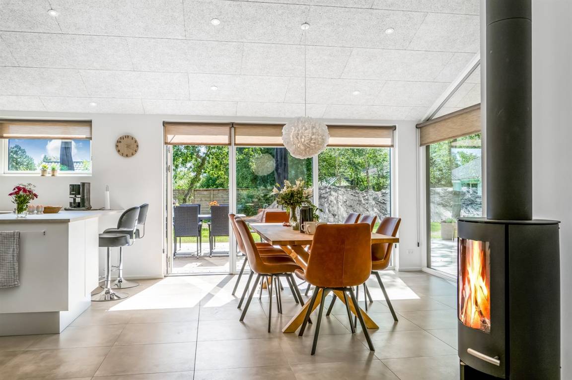 DraußenDie Ferienunterkunft liegt auf einem 1561 m² großen Naturgrundstück. Die Entfernung zum Meer beträgt 330 m. Die Entfernung zum Fjord beträgt 6700 m. Die nächste Einkaufsmöglichkeit liegt 1500 m entfernt. In einem Abstand von 5200 m gibt es einen Golfplatz. Es steht ein offenes Terrassenareal zur Verfügung. Außerdem gibt es überdachte Terrasse. Außendusche. Es steht ein Grill zur Verfügung. Es ist ein Ladestecker für Elektroautos installiert. Ladestecker Typ 2. Mit einer Ladeleistung von 11 kW. Parkplatz auf dem Grundstück.