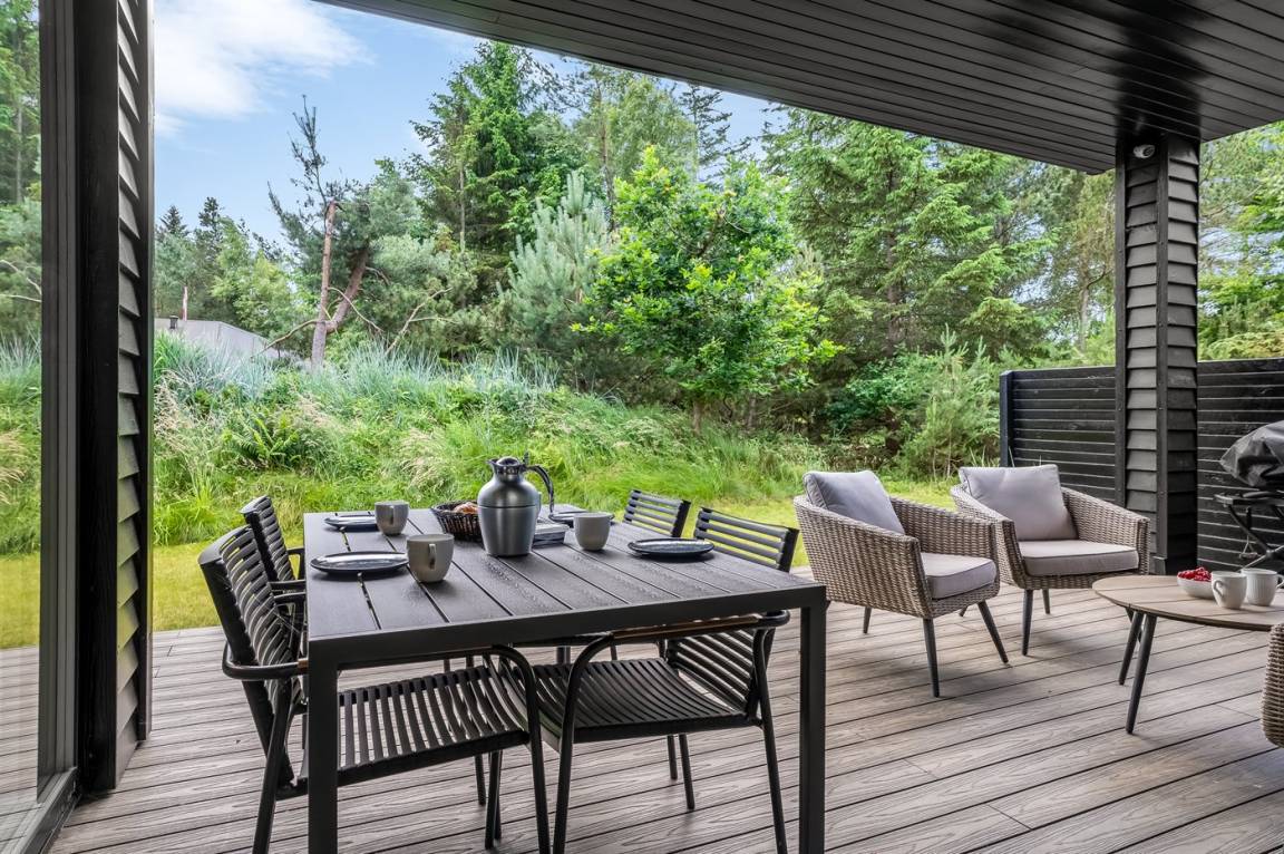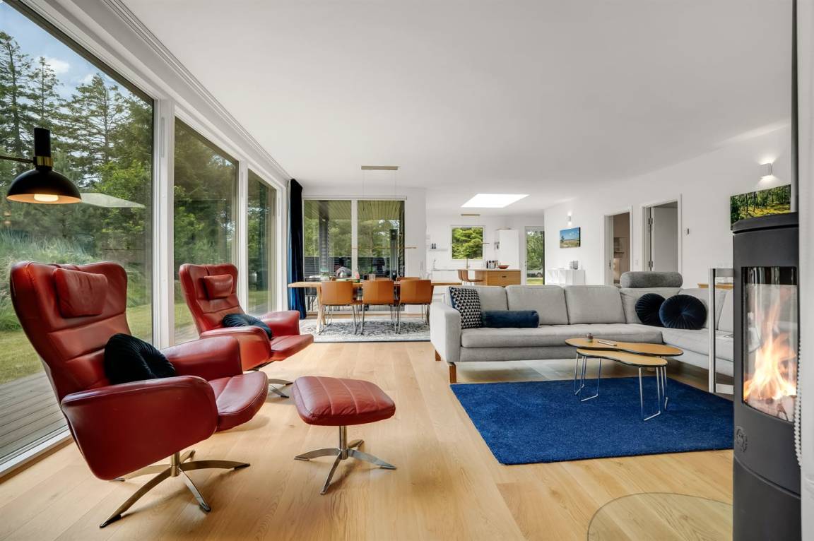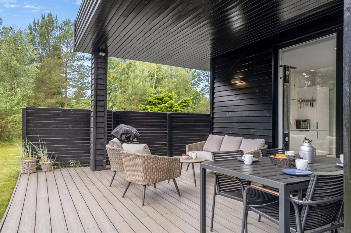 DraußenDie Ferienunterkunft liegt auf einem 1253 m² großen Gartengrundstück. Die Entfernung zum Meer beträgt 450 m. Die Entfernung zum Fjord beträgt 2220 m. Die nächste Einkaufsmöglichkeit liegt 2250 m entfernt. In einem Abstand von 1690 m gibt es einen Golfplatz. Es steht ein offenes Terrassenareal zur Verfügung. Außerdem gibt es überdachte Terrasse. Es steht ein Grill zur Verfügung. Parkplatz auf dem Grundstück.