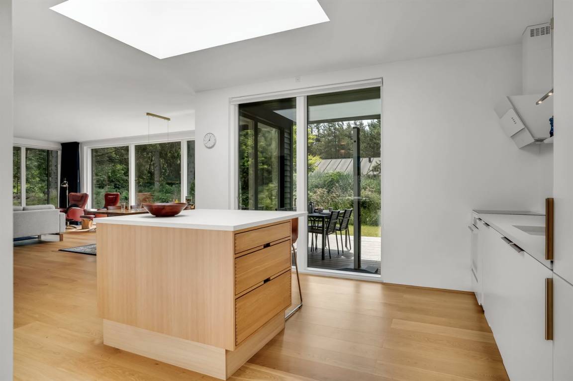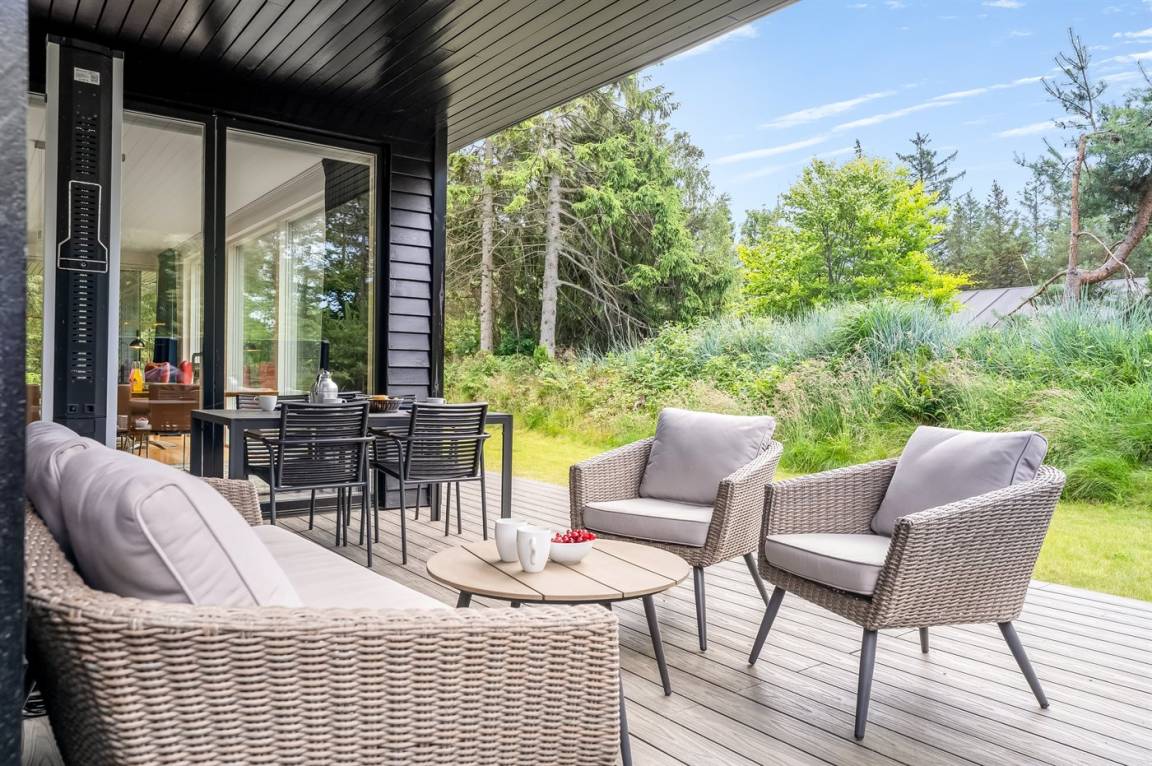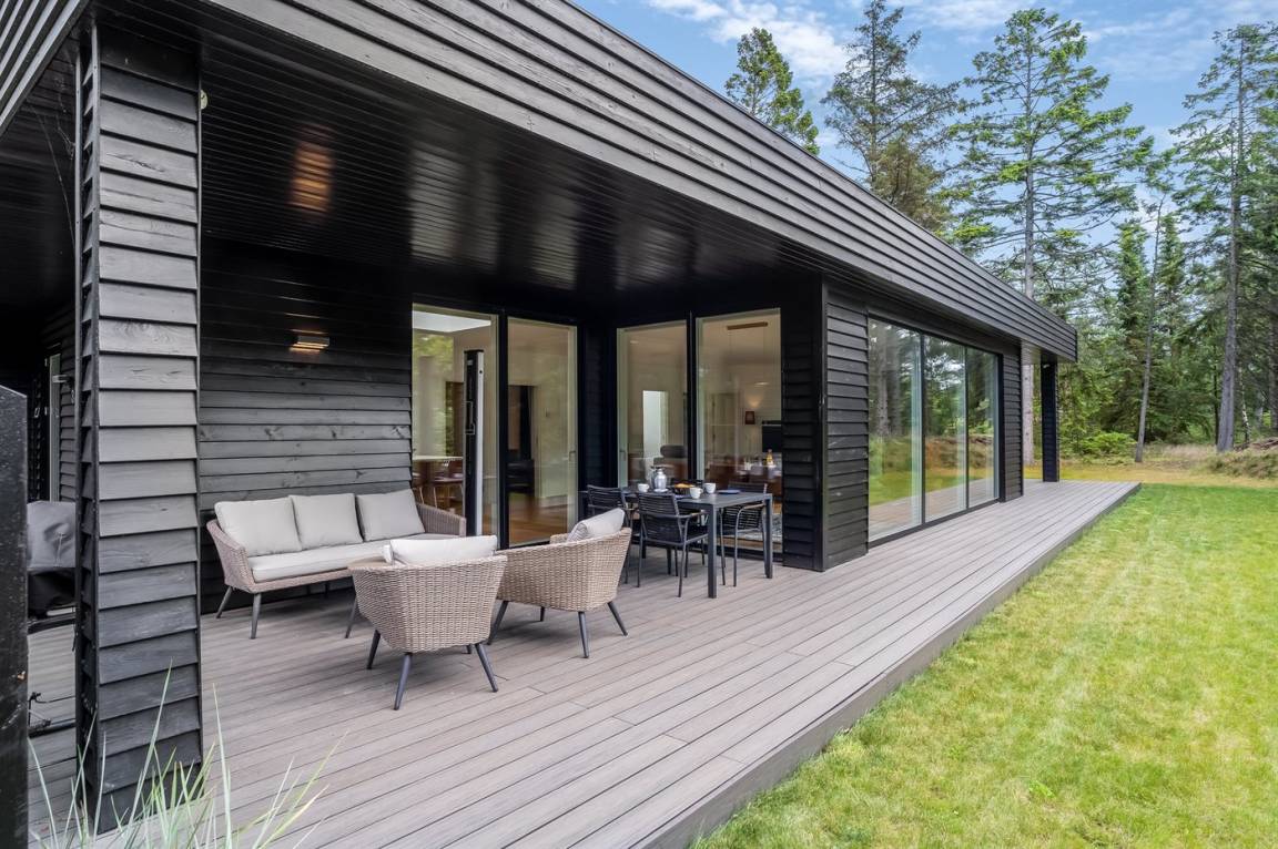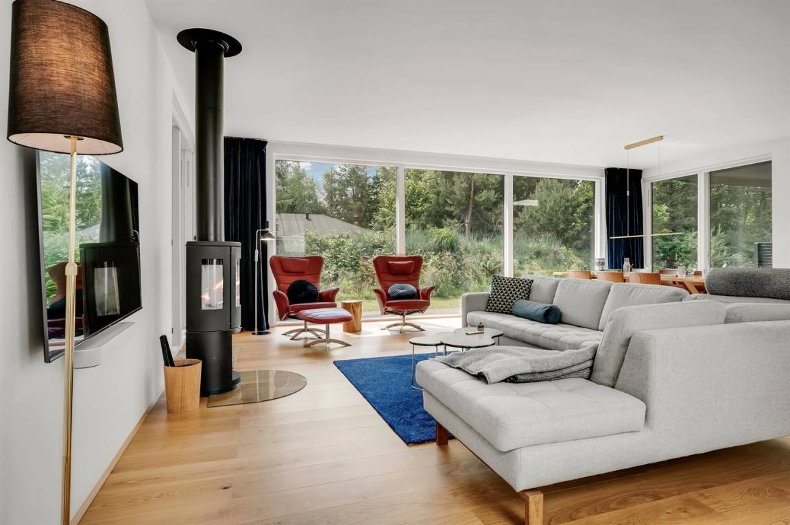 DraußenDie Ferienunterkunft liegt auf einem 1253 m² großen Gartengrundstück. Die Entfernung zum Meer beträgt 450 m. Die Entfernung zum Fjord beträgt 2220 m. Die nächste Einkaufsmöglichkeit liegt 2250 m entfernt. In einem Abstand von 1690 m gibt es einen Golfplatz. Es steht ein offenes Terrassenareal zur Verfügung. Außerdem gibt es überdachte Terrasse. Es steht ein Grill zur Verfügung. Parkplatz auf dem Grundstück.
