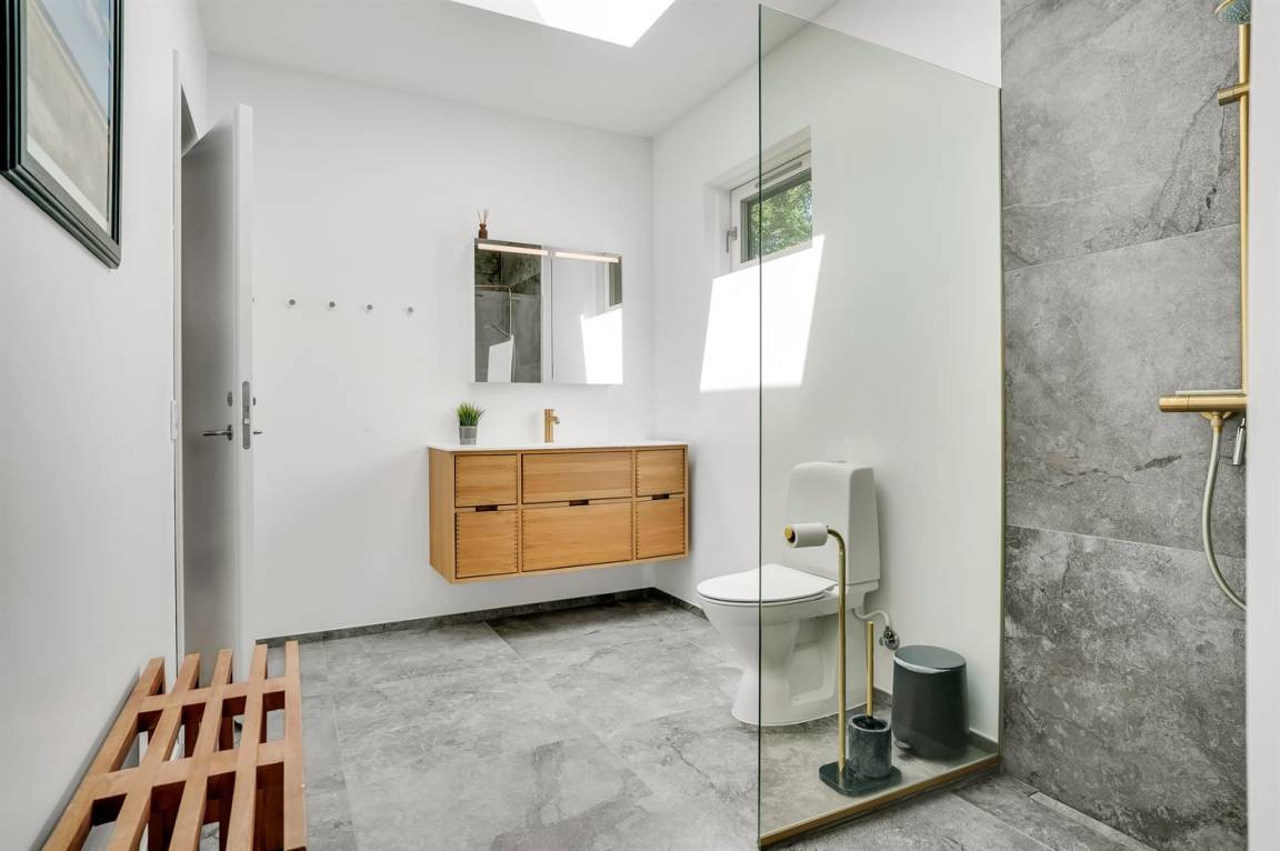 WC und BadEs gibt 1 Badezimmer mit Duschnische und 2 Toiletten, davon 1 Gästetoilette. Fußbodenheizung in 1 Badezimmer. Fußbodenheizung in der Gästetoilette. In der infraroten Sauna können Sie sich so richtig entspannen.