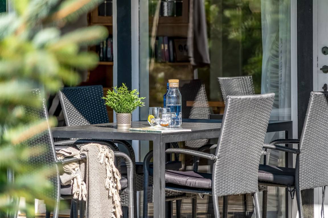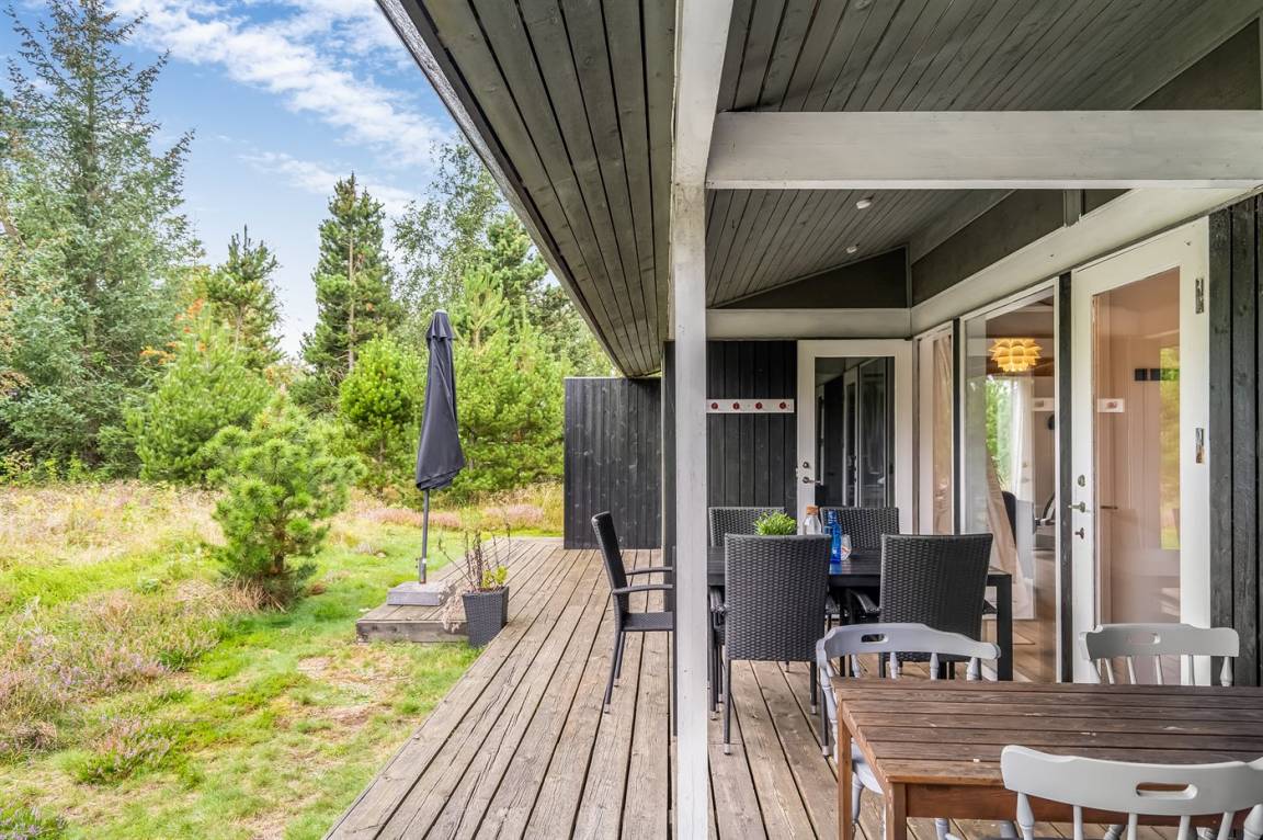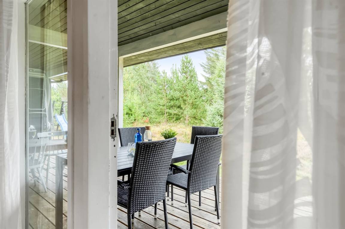 DraußenDie Ferienunterkunft liegt auf einem 1050 m² großen Naturgrundstück. Das Grundstück ist eingezäunt. Die Entfernung zum Meer beträgt 200 m. Die nächste Einkaufsmöglichkeit liegt 1000 m entfernt. Es steht ein 34 m² Terrassenareal zur Verfügung. Außerdem gibt es 10 m² überdachte Terrasse. Schaukel. Parkplatz auf dem Grundstück.