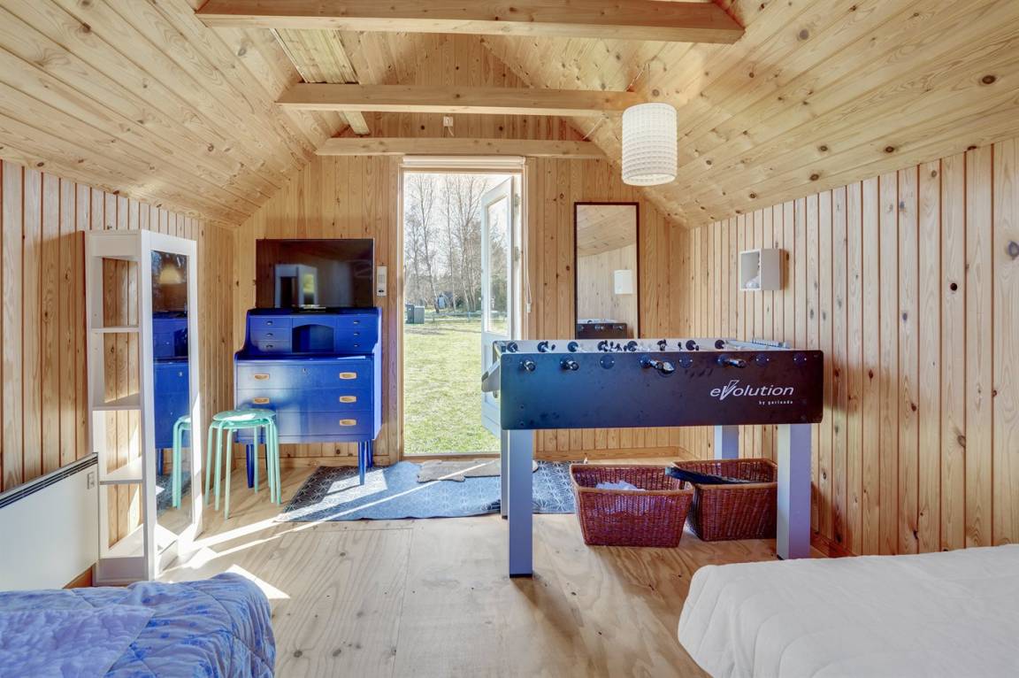 Dieses gemütliche und teilweise modernisierte Ferienhaus liegt in einem ruhigen Feriengebiet - auf einem schönen Grundstück mit Platz für Ballspiele und andere Aktivitäten im Freien. Zum Haus, das etwa 1500 m vom Wasser entfernt liegt, gehört eine schöne Terrasse. Übrigens: 2 der insgesamt 6 Schlafplätze befinden sich in einem Gästehaus auf dem Grundstück. Das Gästehaus ist außerdem mit Tischfußball ausgestattet.