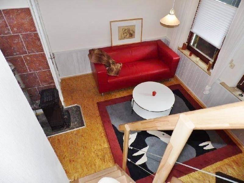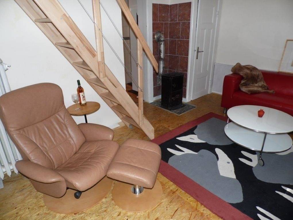 Vom Wohnzimmer ab geht die kleine separate Toilette. Eine Treppe führt hinauf in das Schlafzimmer.
