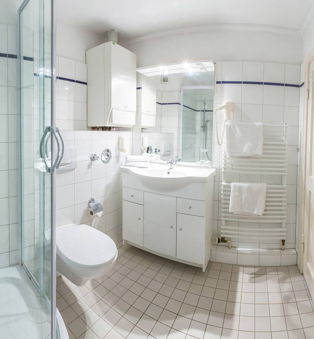 Das Badezimmer verfügt über eine Dusche und einen Haartrockner. Unsere Ferienwohnung ist kinderfreundlich: Babybett und Hochstuhl sind vorhanden.
