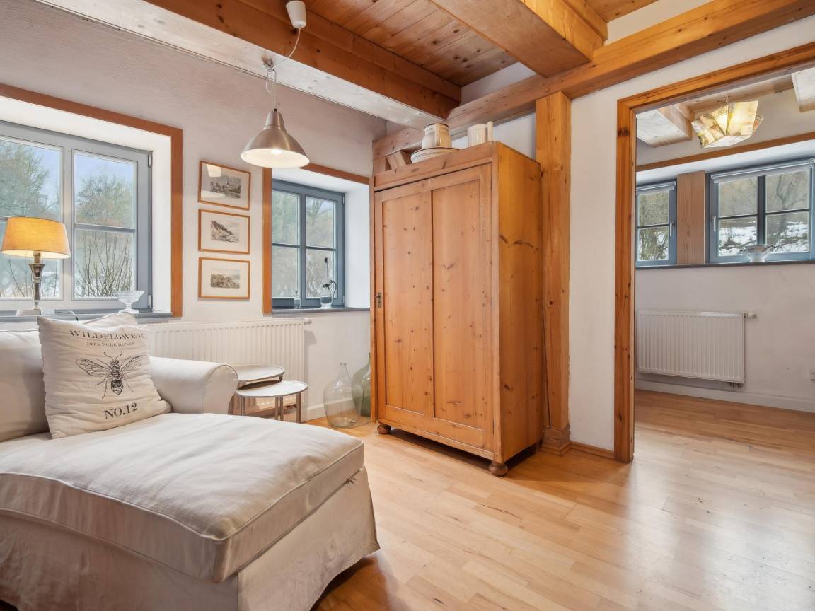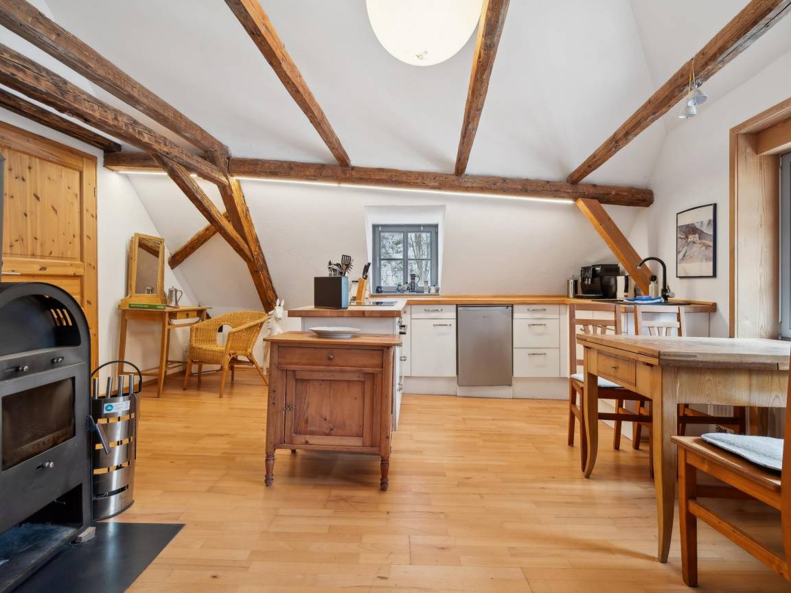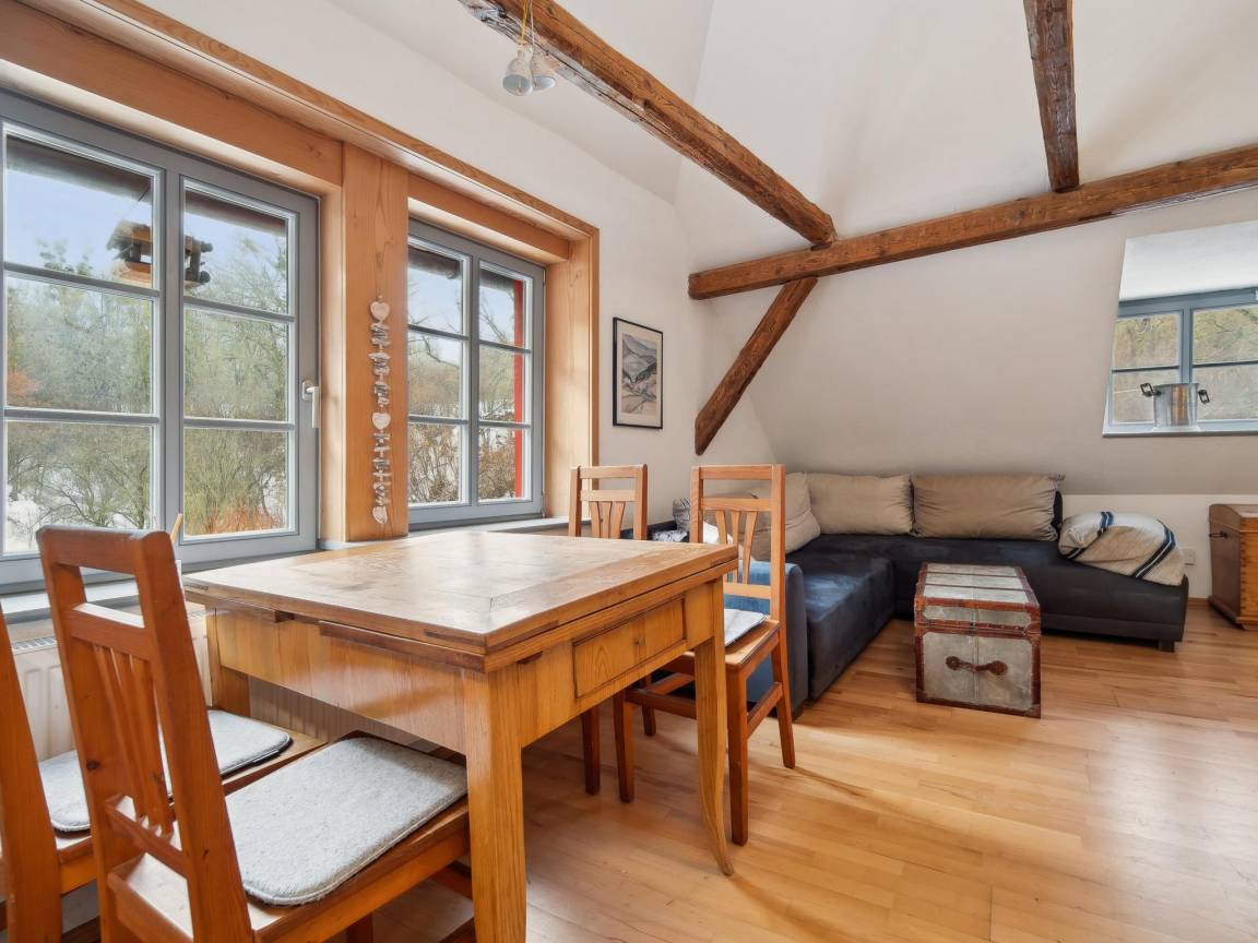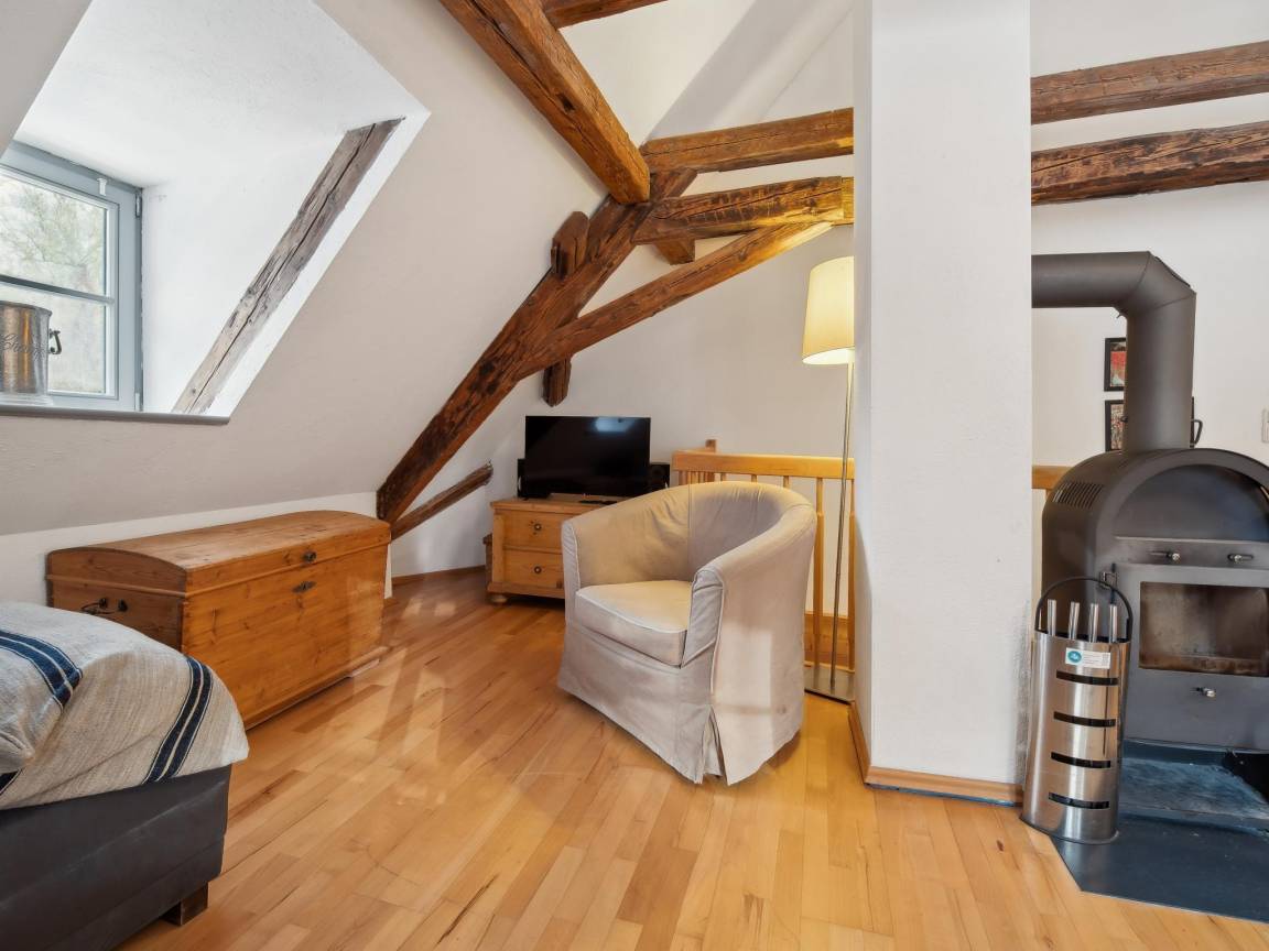 Hausbeschreibung : Diese gemütliche Ferienwohnung befindet sich im Obergeschoss einer liebevoll sanierten, historischen Mühle – idyllisch und ruhig gelegen am Bachlauf, umgeben von Obstbäumen und Wiesen. Ein besonderes Highlight ist das separate Saunahaus am Hof, das 2 Stunden und gegen Gebühr von der Vermieterin exklusiv vorbereitet wird – inklusive frischem Obst und Getränken. Der Garten mit Grillplatz sowie das hofeigene Café mit hausgemachtem Kuchen laden zum Entspannen und Genießen ein