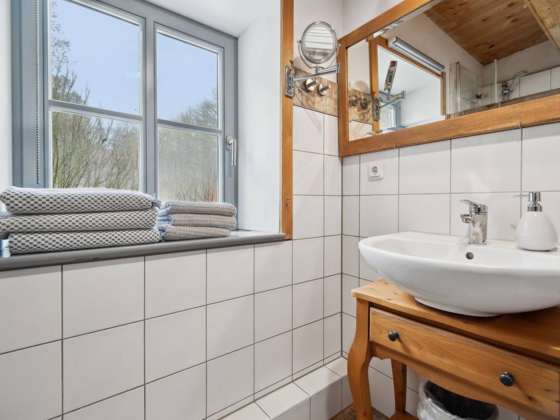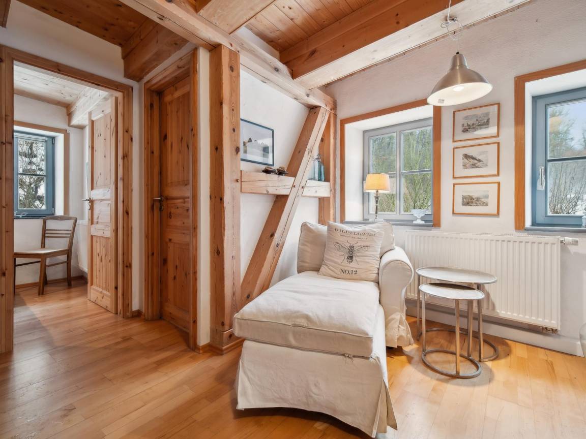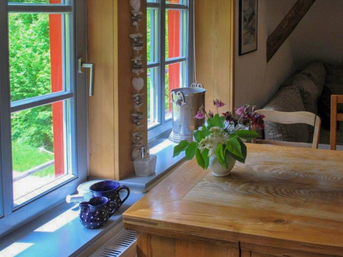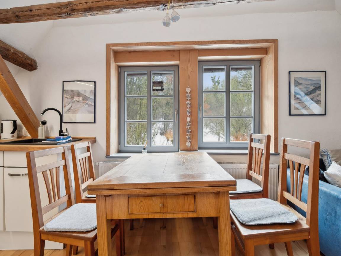 Hausbeschreibung : Diese gemütliche Ferienwohnung befindet sich im Obergeschoss einer liebevoll sanierten, historischen Mühle – idyllisch und ruhig gelegen am Bachlauf, umgeben von Obstbäumen und Wiesen. Ein besonderes Highlight ist das separate Saunahaus am Hof, das 2 Stunden und gegen Gebühr von der Vermieterin exklusiv vorbereitet wird – inklusive frischem Obst und Getränken. Der Garten mit Grillplatz sowie das hofeigene Café mit hausgemachtem Kuchen laden zum Entspannen und Genießen ein
