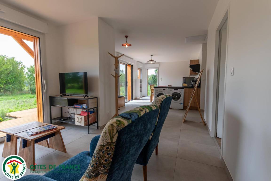 „Gîte spacieux, propre, confortable dans un esprit simple et naturel mais avec tout l'équipement moderne au calme dans un verger bien entretenu et aménagé.“