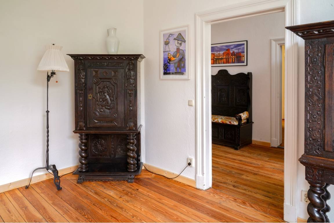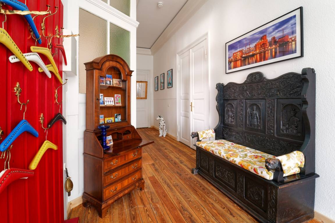 Erleben Sie maritimen Charme und historischen Flair in der stilvoll eingerichteten Ferienwohnung Gelbe Katze. Die großzügige Wohnung mit 115 m² Wohnfläche liegt im Hochparterre eines gepflegten Stadthauses am ruhigen Rand des Altstadtrings von Wismar – einer der schönsten Hansestädte an der Ostseeküste. Der malerische Marktplatz mit seinen beeindruckenden Backsteinbauten, kleinen Geschäften, Cafés und Restaurants ist nur etwa 5 Gehminuten entfernt.