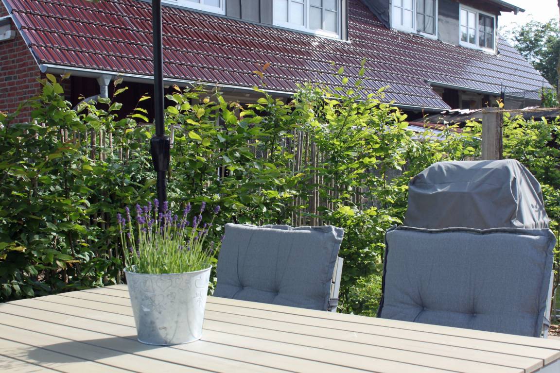 Vor dem Haus gibt es eine kleine Terrasse mit Gartenmöbeln und Grill, die Sie gemeinsam mit der im 1. Stock liegenden Ferienwohnung HeidiLux 2 (Platz für 2 Erwachsene, 2 Kinder) nutzen. Ein PKW-Stellplatz befindet sich auf dem Grundstück.