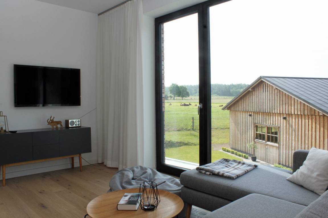 Genießen Sie Ihren Urlaub in der Lüneburger Heide in der komfortablen, modern ausgestatteten Ferienwohnung HeiDi Lux in vollen Zügen. Die Ferienwohnung (Neubau) im 1. Stock verfügt über zwei Schlafzimmer, jeweils mit Doppelbett und einen großzügigen, lichtdurchfluteten Wohnbereich mit offener Küche. Das moderne Bad ist mit bodengleicher Dusche und WC ausgestattet. Für wohlige Wärme sorgt die Fußbodenheizung in allen Räumen. Eine Waschmaschine steht im gemeinsamen Hausflur zur Verfügung.