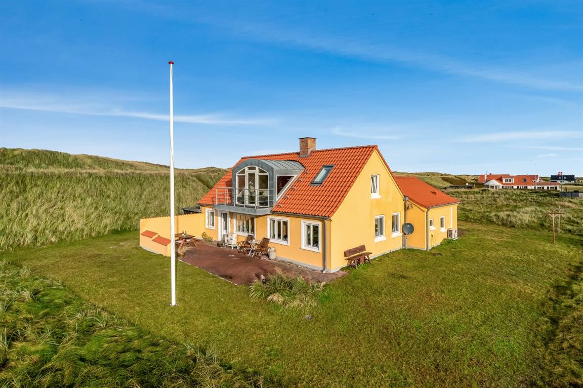 Dieses schöne und geräumige Ferienhaus liegt in der ersten Reihe zum Wasser, direkt hinter den hohen Dünen zum Strand und zur Nordsee. Das Haus liegt am Ende der Sackgasse in der ruhigen und landschaftlich reizvollen Gegend von Langerhuse, unmittelbar in der Nähe des Limfjordes. Das Haus ist liebevoll renoviert und gepflegt, mit einem hellen und gemütlichen Dekor und vom Wohnzimmer im ersten Stock gibt es einen schönen Blick auf die Umgebung, sowie Zugang zum Südbalkon. Zum Haus gehören mehrere schöne Terrassen, wo Sie sowohl Sonne als auch Schutz finden können.Die Treppe auf dem Grundstück führt durch die Dünen und direkt hinunter zum Strand und zum Meer.
