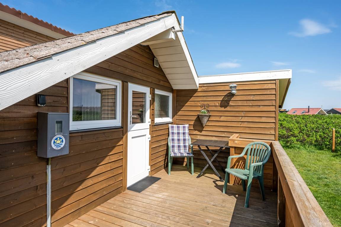 DraußenDie Ferienunterkunft liegt auf einem 815 m² großen Naturgrundstück. Die Entfernung zum Meer beträgt 200 m. Die nächste Einkaufsmöglichkeit liegt 300 m entfernt. Es steht ein 21 m² Terrassenareal zur Verfügung. Geräteraum. Parkplatz auf dem Grundstück.