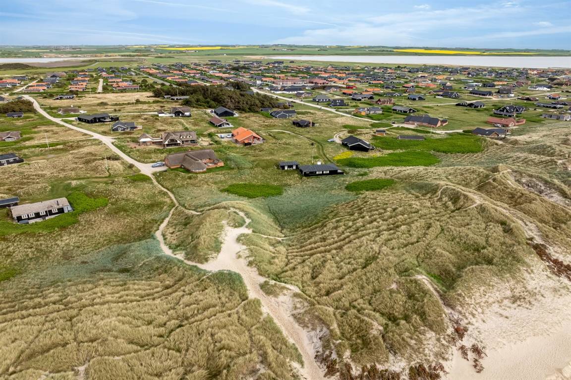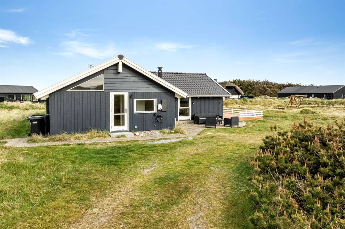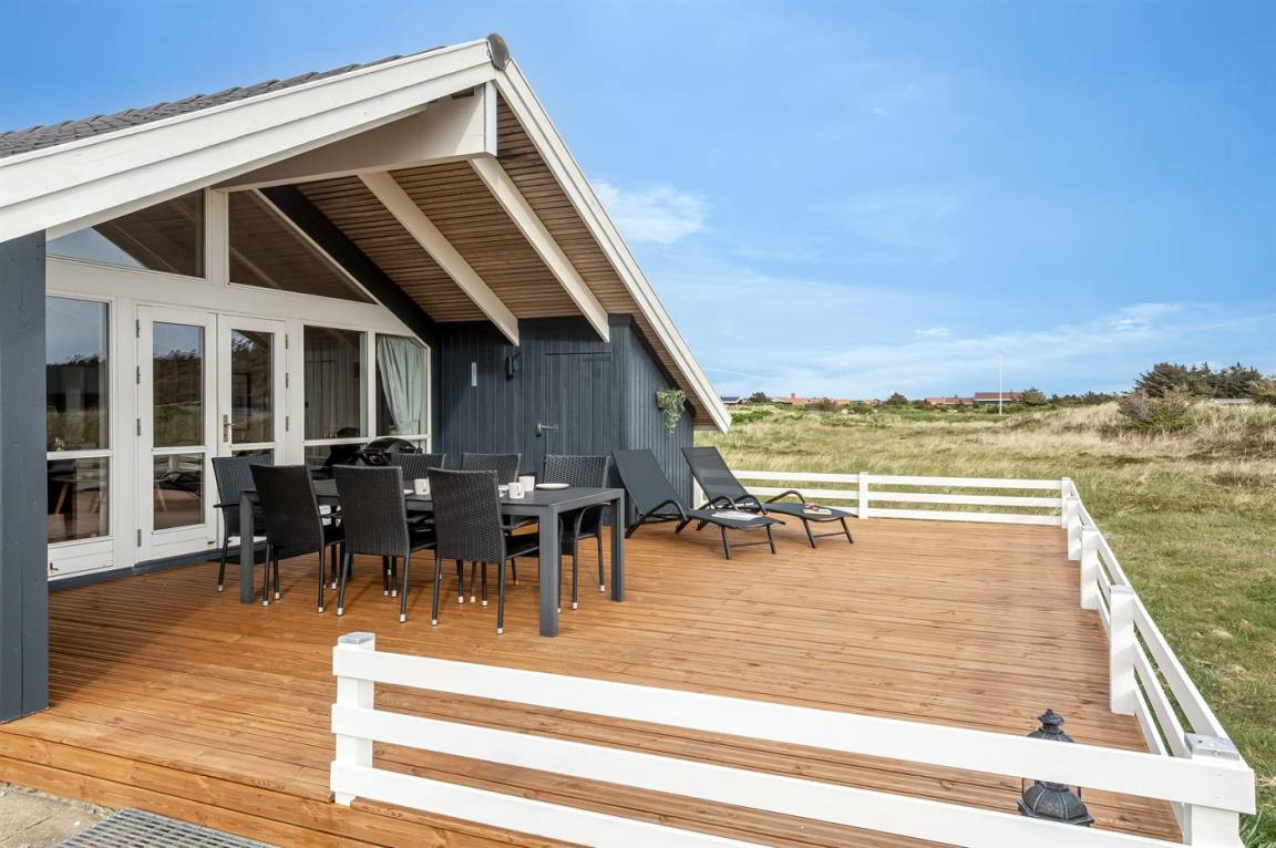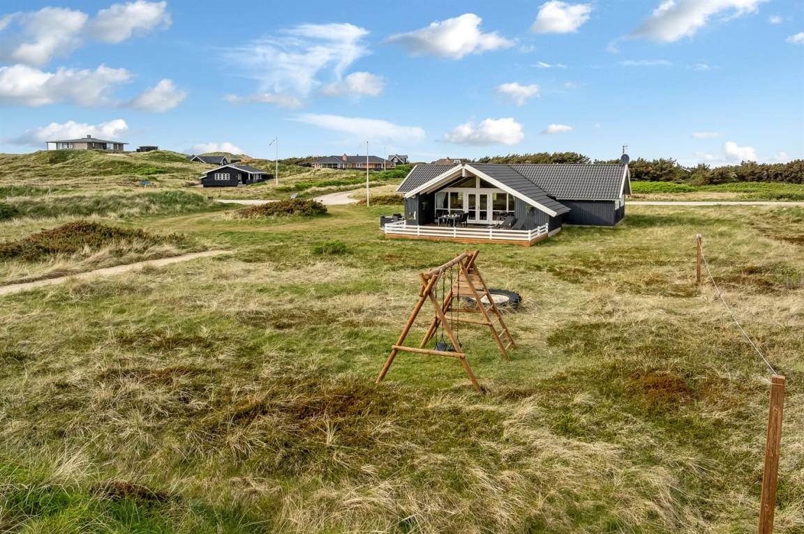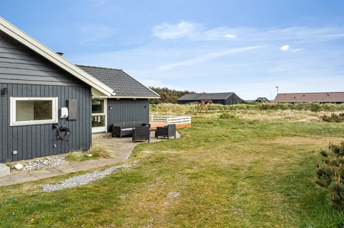 Dieses sehr schöne Ferienhaus aus Holz liegt auf einem sehr großen Natur-/Dünengrundstück - nur etwa 100 m von der Nordsee entfernt. Zum Haus gehört eine teilweise überdachte Terrasse mit guten Gartenmöbeln.