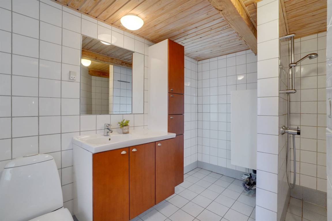 Es gibt insgesamt drei Badezimmer, jeweils mit Duschnische und Toilette. Alle können mit Fußbodenheizung oder Heizkörper beheizt werden.