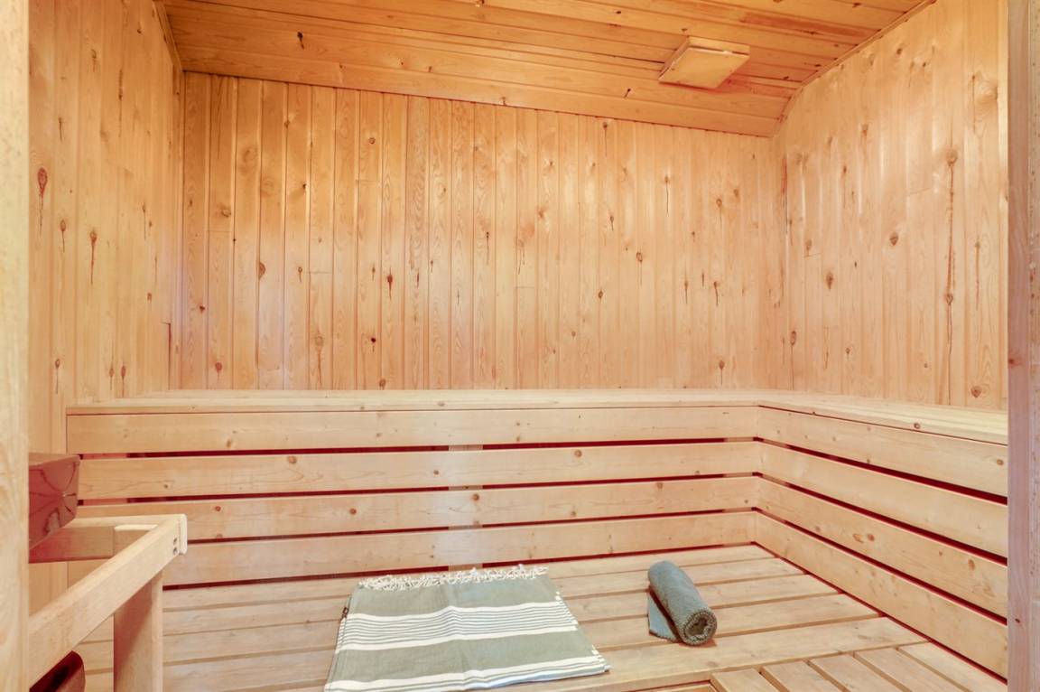 Die Sauna bietet Platz für bis zu sechs Personen. Für eine kalte Erfrischung steht eine Duschnische im Whirlpool-Raum direkt gegenüber bereit.
