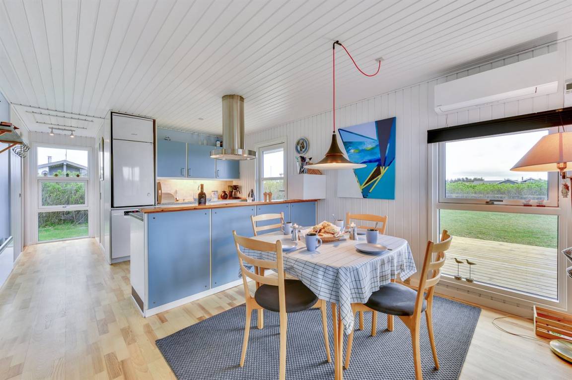 Geschmackvoll eingerichtetes Ferienhaus in einer attraktiven Ferienhaussiedlung inmitten malerischer Natur, ganz in der Nähe von Strand und Nordsee. Das Haus liegt am Ende einer Sackgasse, angrenzend an eine gemeinschaftlich nutzbare Grünfläche mit Spielplatz.