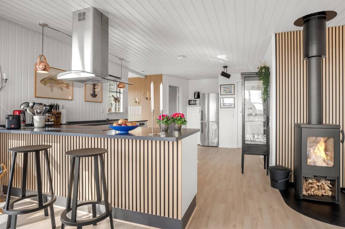 EinrichtungDas Ferienhaus eignet sich für 6 Personen sowie 1 Kleinkind bis zu 3 Jahren. Die Ferienunterkunft hat eine Wohnfläche von 105 m² und wurde 1975 gebaut. 2020 wurde die Ferienunterkunft teilweise renoviert. Es ist erlaubt 2 Haustiere mitzubringen. Die Ferienunterkunft ist mit energiesparender Wärmepumpe ausgestattet. Die Ferienunterkunft ist mit Waschmaschine ausgestattet. Wäschetrockner. Tiefkühlmöglichkeit mit 40 Liter Nutzinhalt. Es gibt außerdem einen Kaminofen. Für die jüngsten Feriengäste ist 1 Kinderhochstuhl vorhanden.
