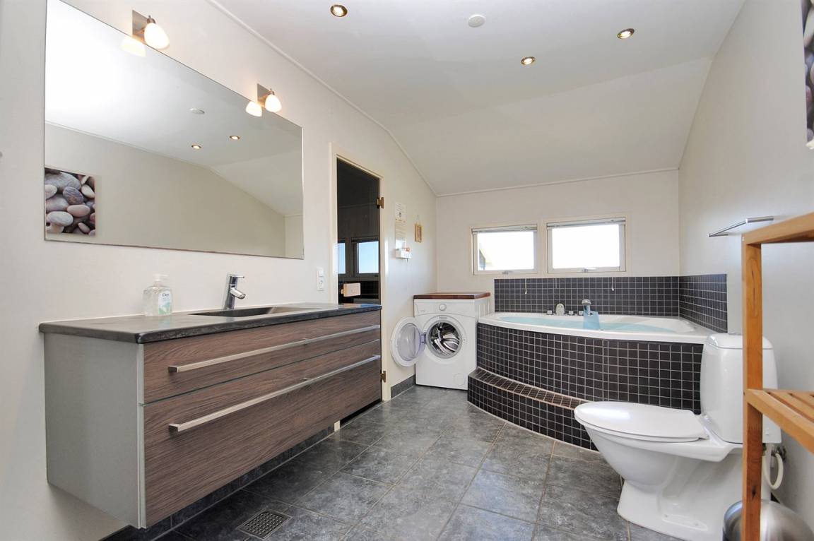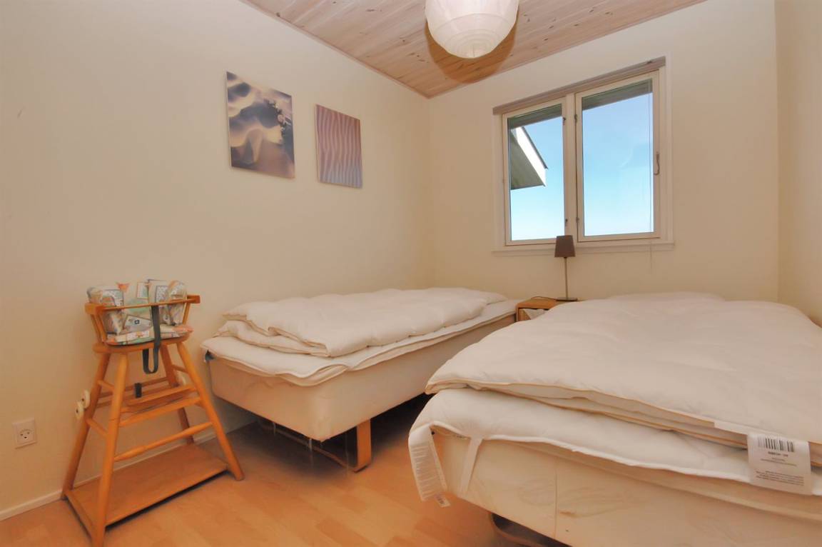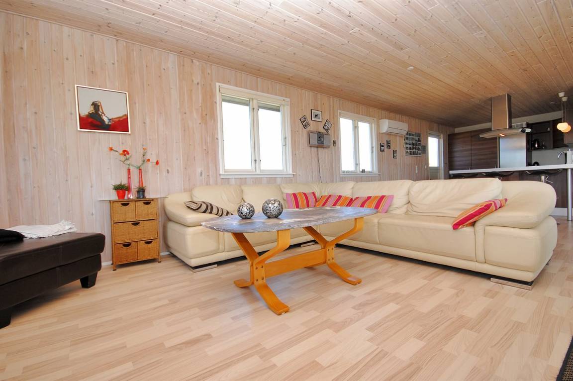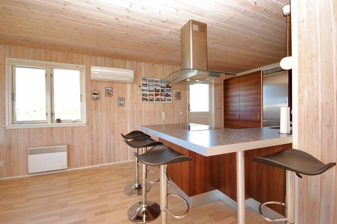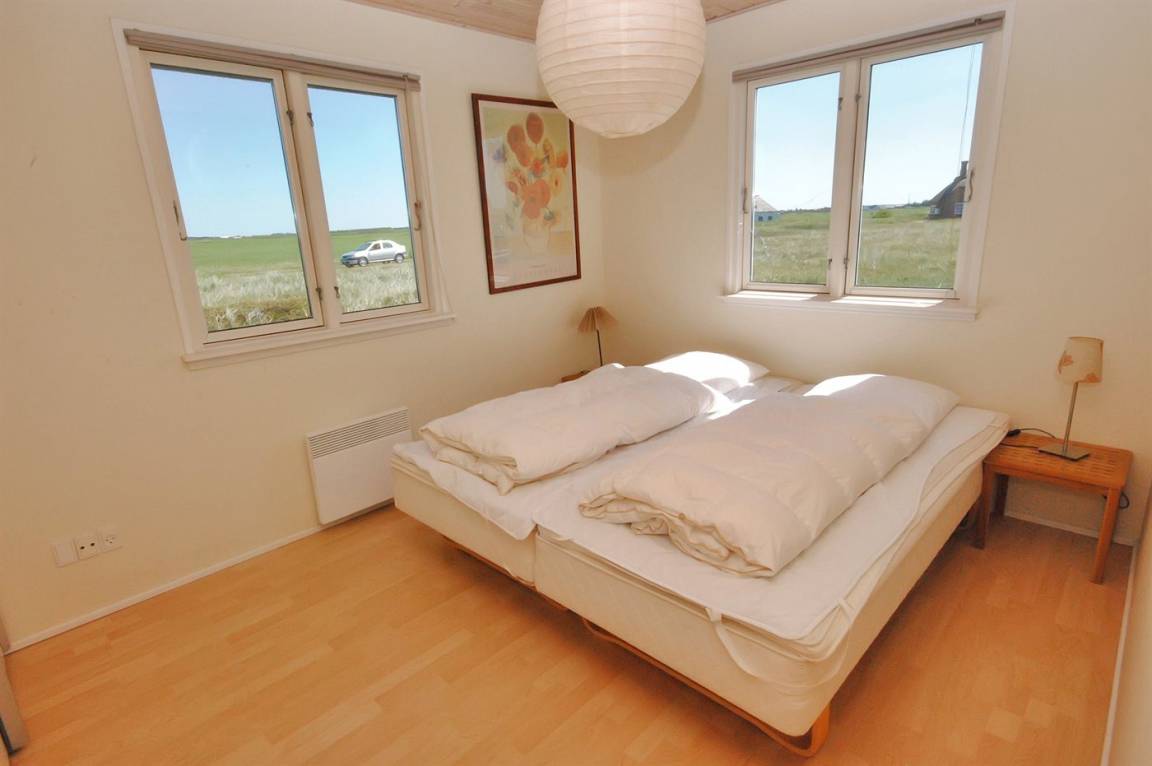 Besonders schönes, großes Ferienhaus aus Holz, 2006 gebaut, auf einem schönen Eck-/Dünengrundstück nur ca. 100 m von der schönen Nordsee mit ihren vielen rekreativen Möglichkeiten gelegen. Schöne, große, nach Süden gerichtete Terrasse mit gutem Windschutz und guten Gartenmöbeln für die Erwachsene sowie Schaukel und Sandkiste für die Kinder. Innen gibt es Böden, Wände und Decken aus hellem Holz. Das schöne Badezimmer ist mit schönem 2-Pers.-Whirlpool, Duschnische, Fußbodenheizung und Sauna eingerichtet. Sehr großes Wohnzimmer mit netten Möblen, TV mit digitalem Satellitenanschluss, DVD-Spieler, CD-Spieler sowie Kaminofen und Zugang zur Terrasse. Die große Küche ist in offener Verbindung mit dem Wohnzimmer und enthält alle moderne Geräte, u. a. Tiefkühlgerät, Warmluftofen, Mikrowelle, Geschirrspüler und Herd mit Ceran-Feld. 3 gute, große Schlafzimmer mit Doppelbett. An weiterer Ausstattung kann kostenlose, kabellose Internetverbindung erwähnt werden (eigener Computer muss mitgebracht werden) und es ist eine energiesparende Wärmepumpe installiert. Für die kleinen Feriengäste stehen Kinderbett und Kinderhochstuhl zur Verfügung.Das Haus liegt in einem schönen Ferienhausgebiet mit vielen Aktivitätsmöglichkeiten. In diesem Haus können Sie zu jeder Jahreszeit einen schönen Urlaub machen, egal ob Sie baden, angeln, surfen, Golf spielen oder bloß in der schönen Natur am Wasser wandern möchten.