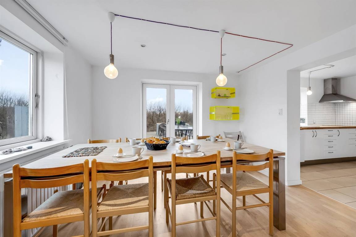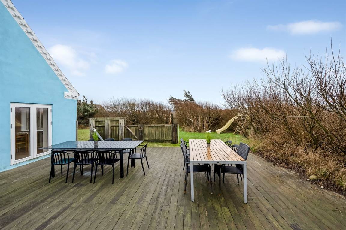 DraußenDie Ferienunterkunft liegt auf einem 2500 m² großen Dünengrundstück. Die Entfernung zum Meer beträgt 200 m. Die nächste Einkaufsmöglichkeit liegt 300 m entfernt. Es steht ein offenes Terrassenareal zur Verfügung. Es steht ein Carport zur Verfügung. Es ist ein Ladestecker für Elektroautos installiert. Parkplatz auf dem Grundstück.