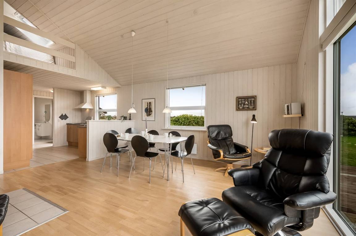 Äußerst gut gehaltenes Haus mit Whirlpool, nur 10 Min. zum Fuß von der Nordsee, das zu jeder Jahreszeit ein Erlebnis in sich selbst ist. Das Haus ist funktionell und modern eingerichtet mit einer großen Wohnküche. Über die Küche gibt es ein offenes Obergeschoss, das für die Kinder eine gemütliche Höhle sein wird, wo man schlafen und sich selbst sein kann. Im großen Badezimmer mit beheizbarem Fußboden gibt es ein 2-Pers. Whirlpool und direkten Zutritt zum Sauna. Die Küche funktioniert gut und ist u. a. mit Geschirrspüler, Umluftofen und Herd mit Ceran-Feld ausgestattet. Im Wohnzimmer gibt es TV mit digitalem Satellitenanschluss, DVD-Spieler, CD-Spieler, Kaminofen sowie Ausgang zu einer großen Holzterrasse. Die Schlafplätze des Hauses verteilen sich auf 2 Schlafzimmern mit Doppelbett und 1 Zimmer mit 2 Einzelbetten. Darüber hinaus gibt es die 2 Schlafplätze im offenen Obergeschoss. Die Zimmer haben gute Betten und viel Schrankplatz für die Aufbewahrung von Kleidern, usw. Kostenlose, kabellose Internetverbindung vorhanden (eigener Computer ist mitzubringen). In unmittelbare Nähe des Hauses gibt es gute Einkaufsmöglichkeiten, Kerzenfabrik, wo man seine eigenen Kerzen gießen kann. Alles im allen eine gute Basis für erfolgreiche Ferien, wo Entspannung und Erlebnisse den Ehrenplatz einnehmen.